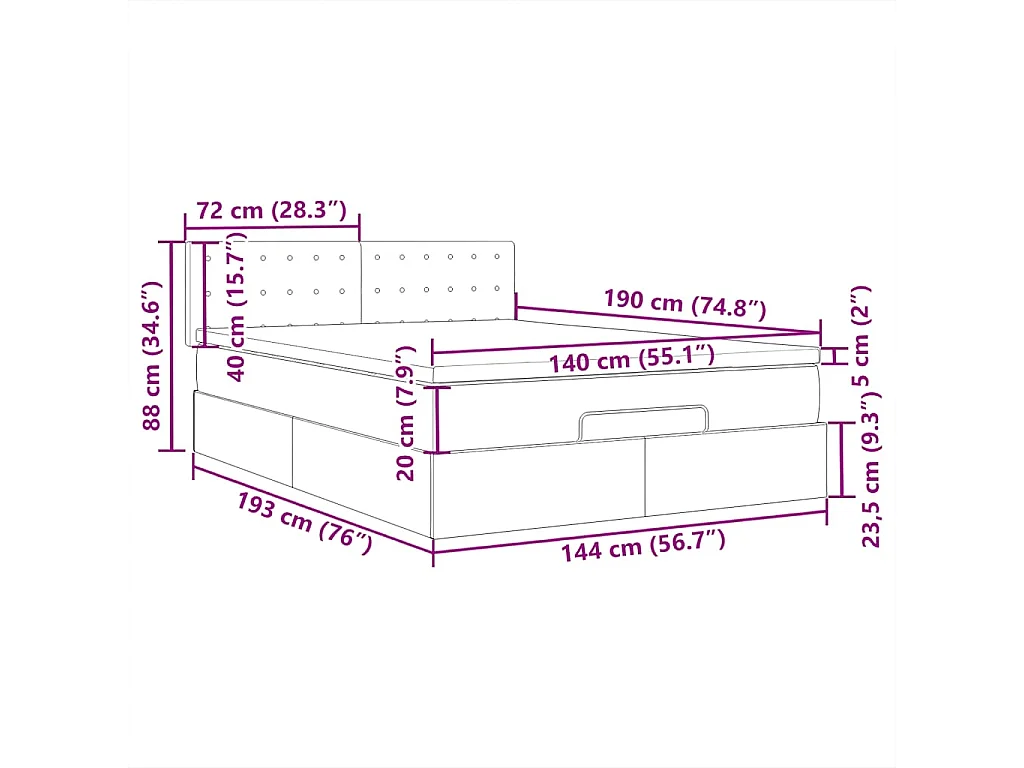 Lit ottoman avec matelas et LED gris foncé 140x190 cm tissu
