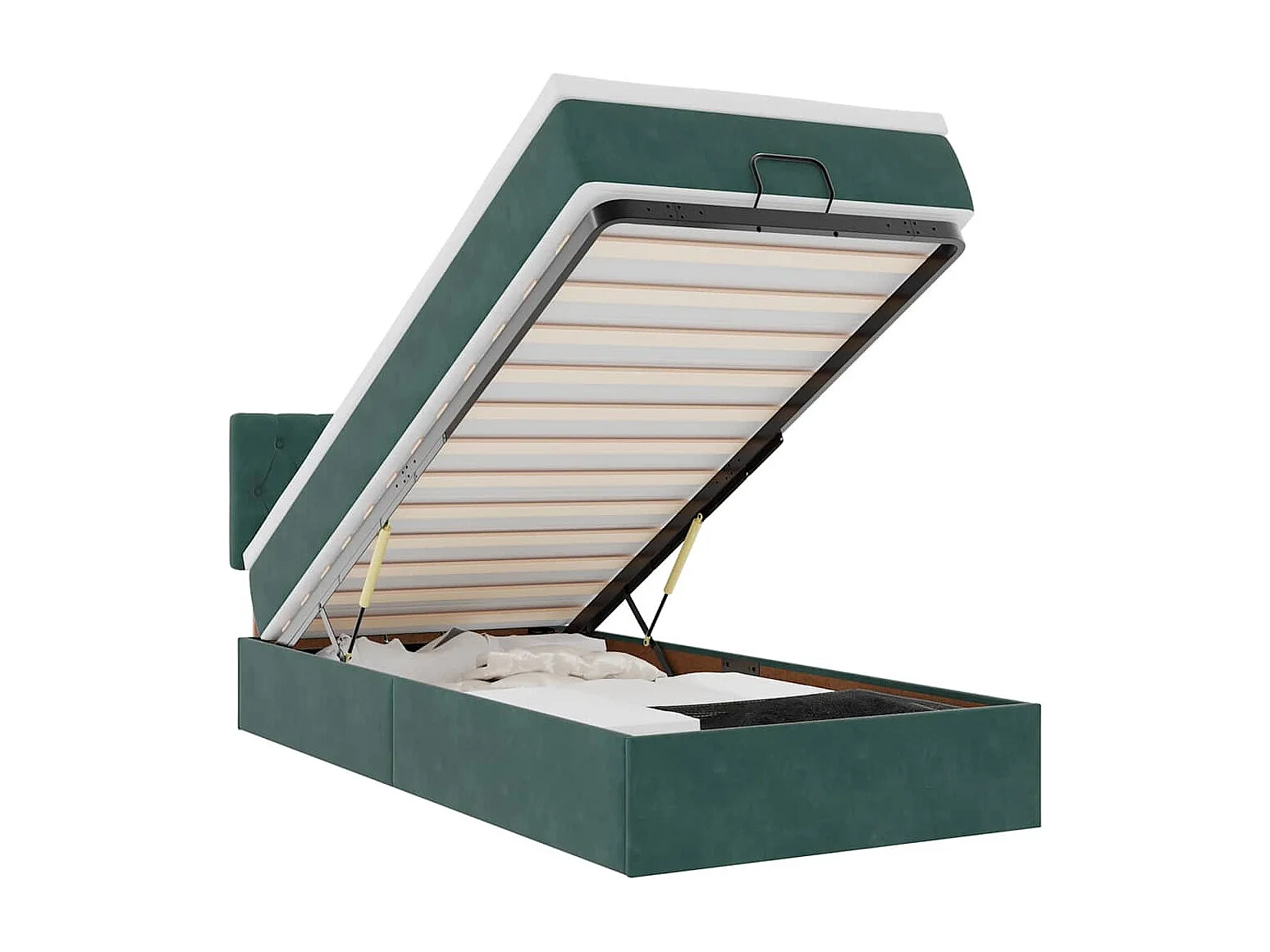 Lit ottoman avec matelas et LED Vert foncé 90x200cm velours