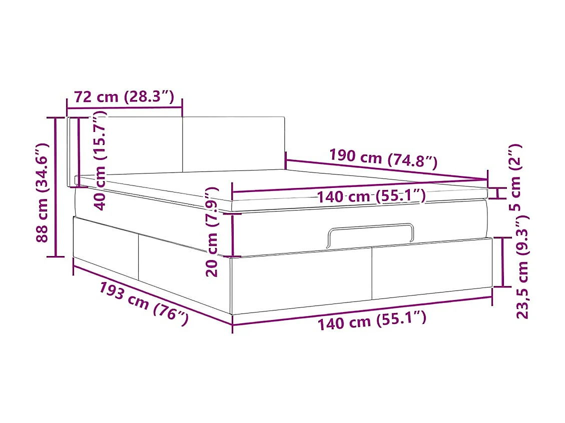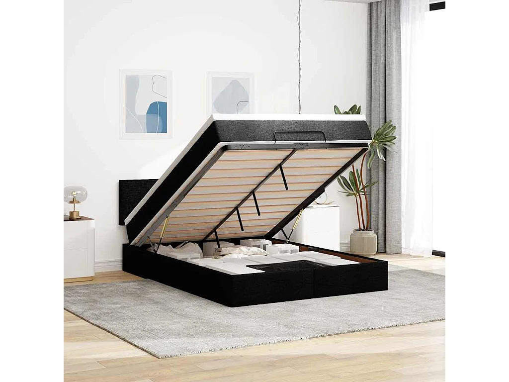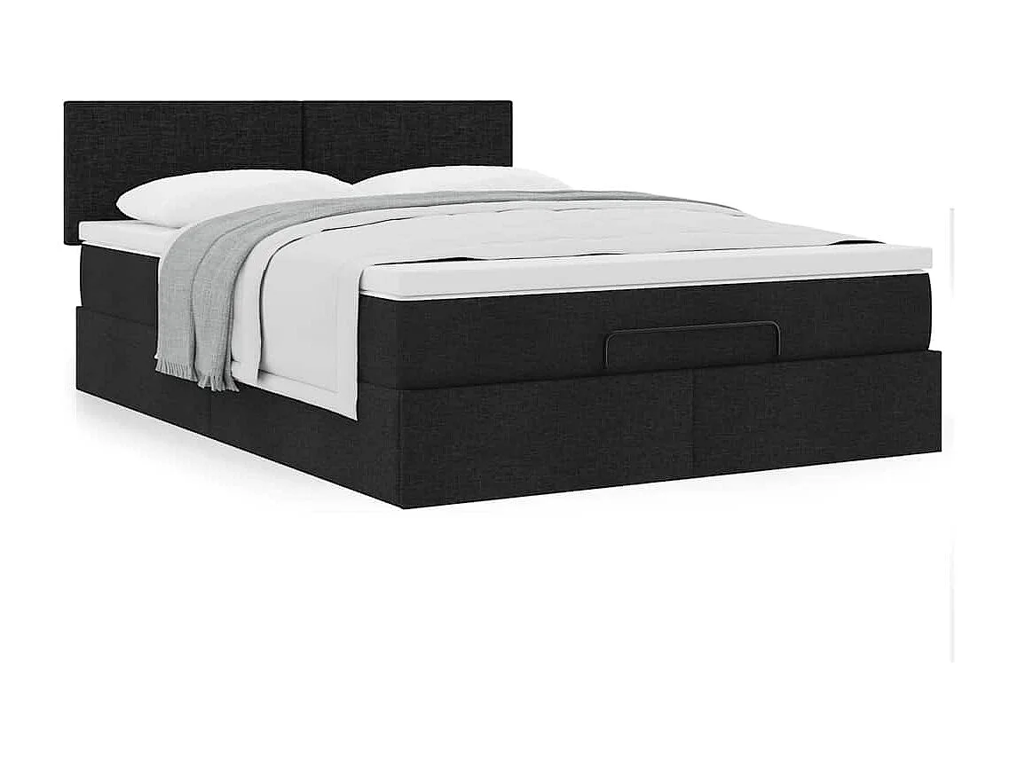 Lit ottoman avec matelas noir 140x190 cm tissu