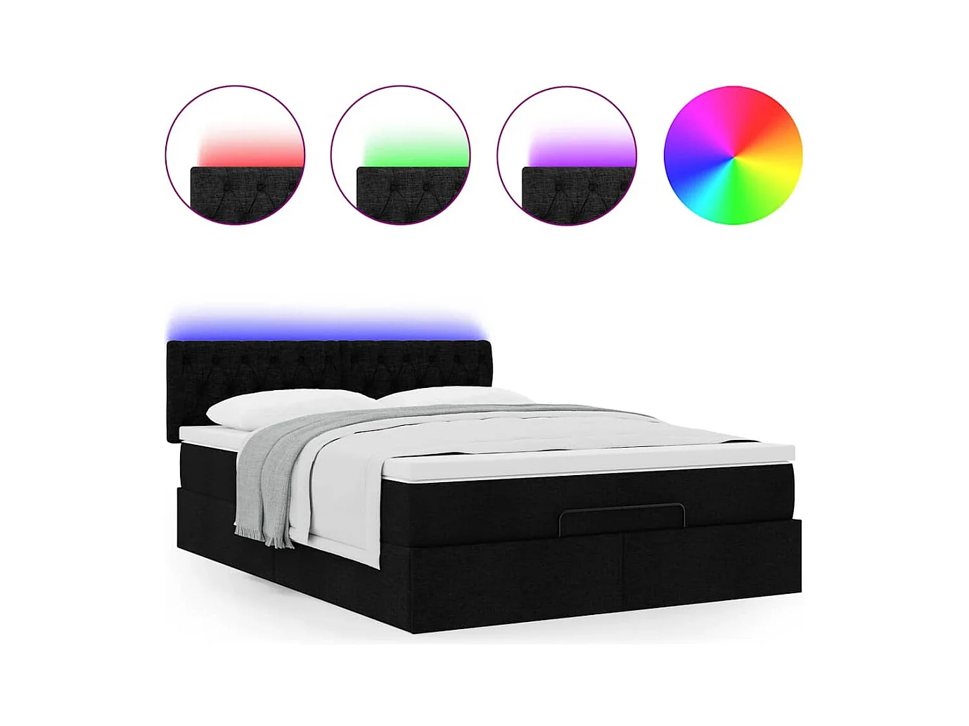 Lit ottoman avec matelas noir 140x200 cm tissu