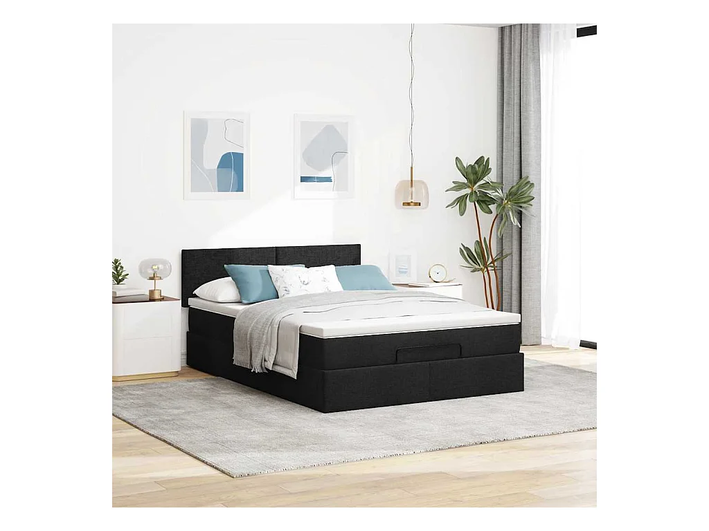 Lit ottoman avec matelas noir 140x200 cm tissu