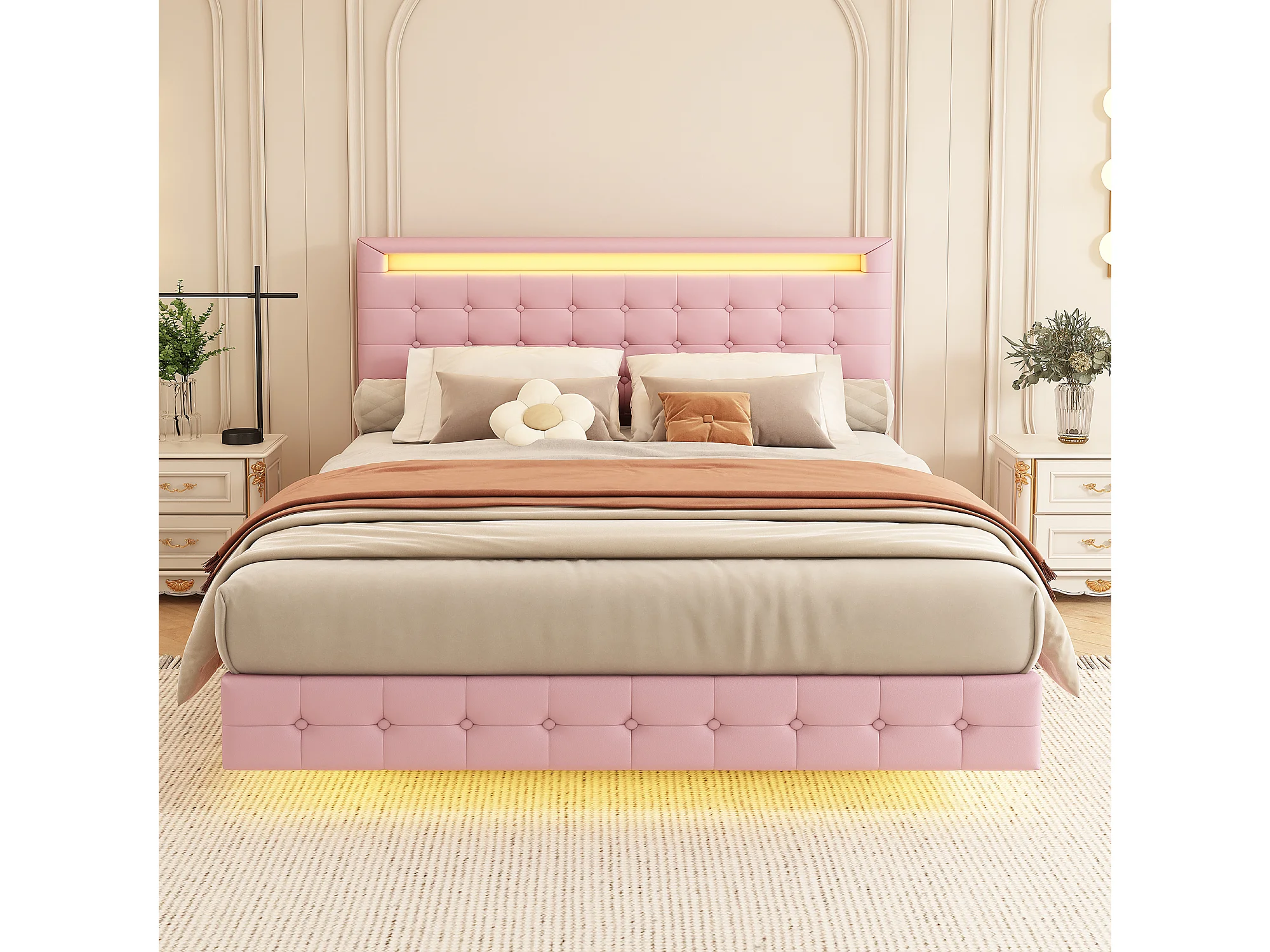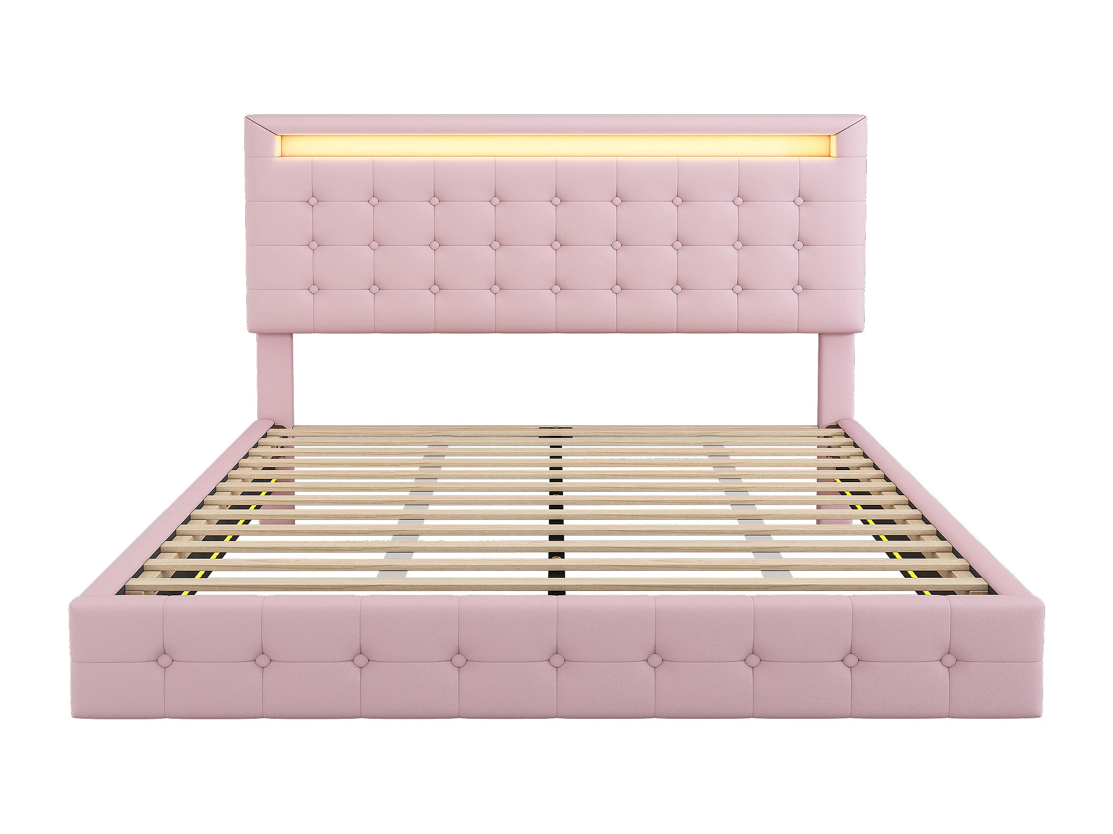 Lit adulte 140x200 cm - PU rose - Lit double avec éclairage LED - Tête de lit réglable