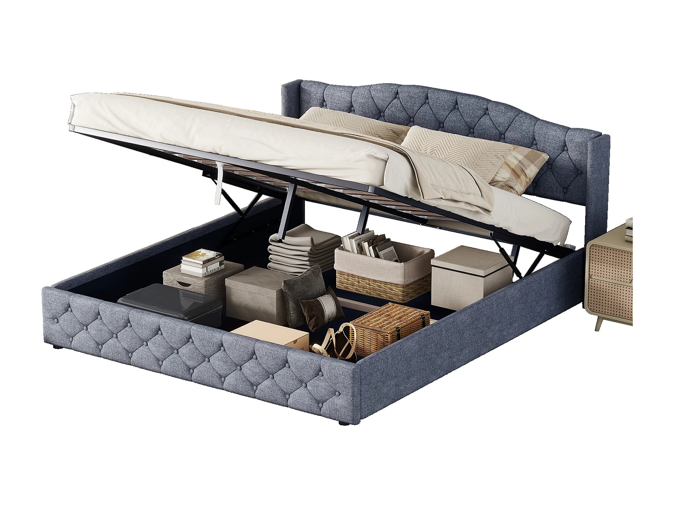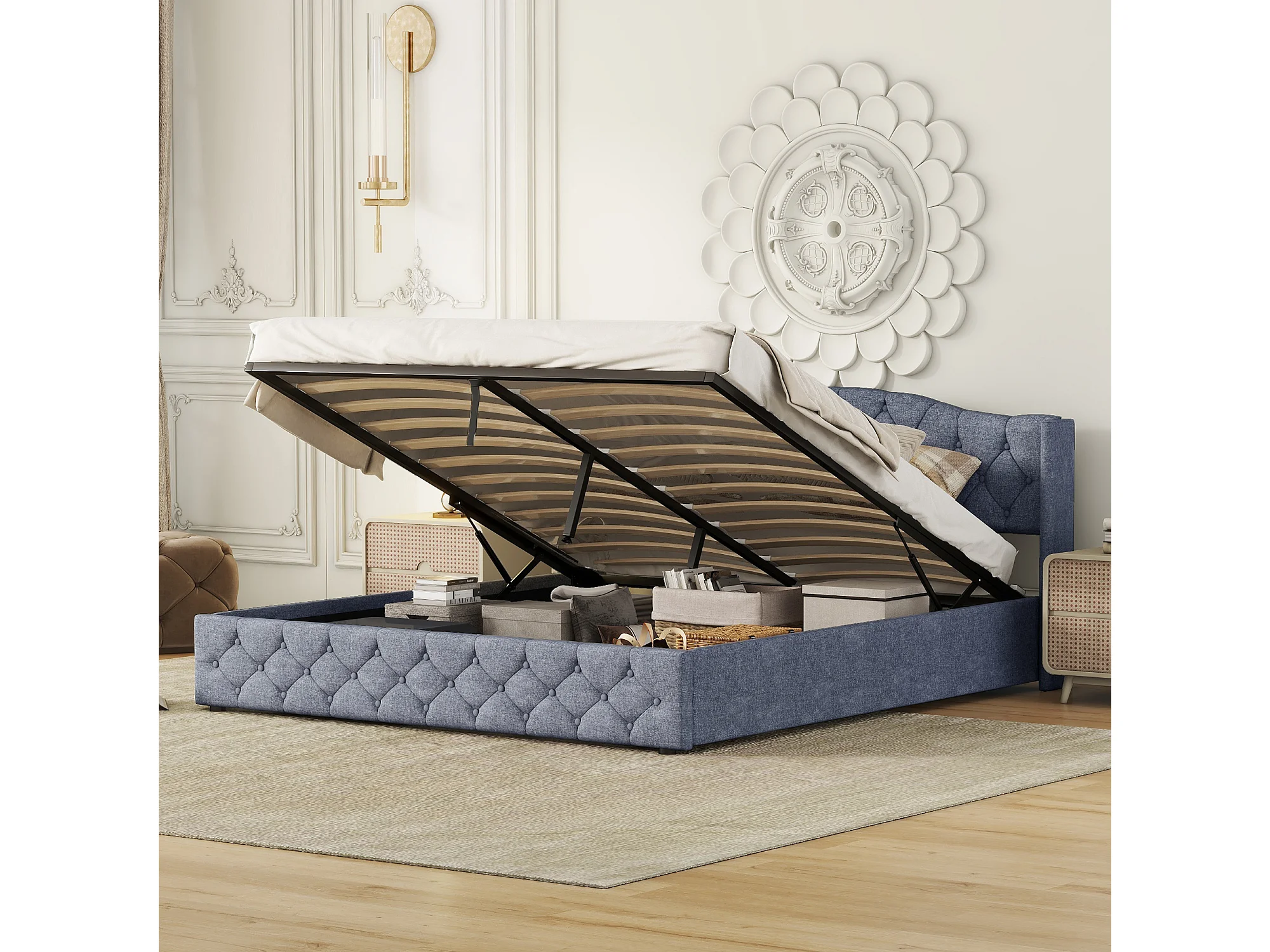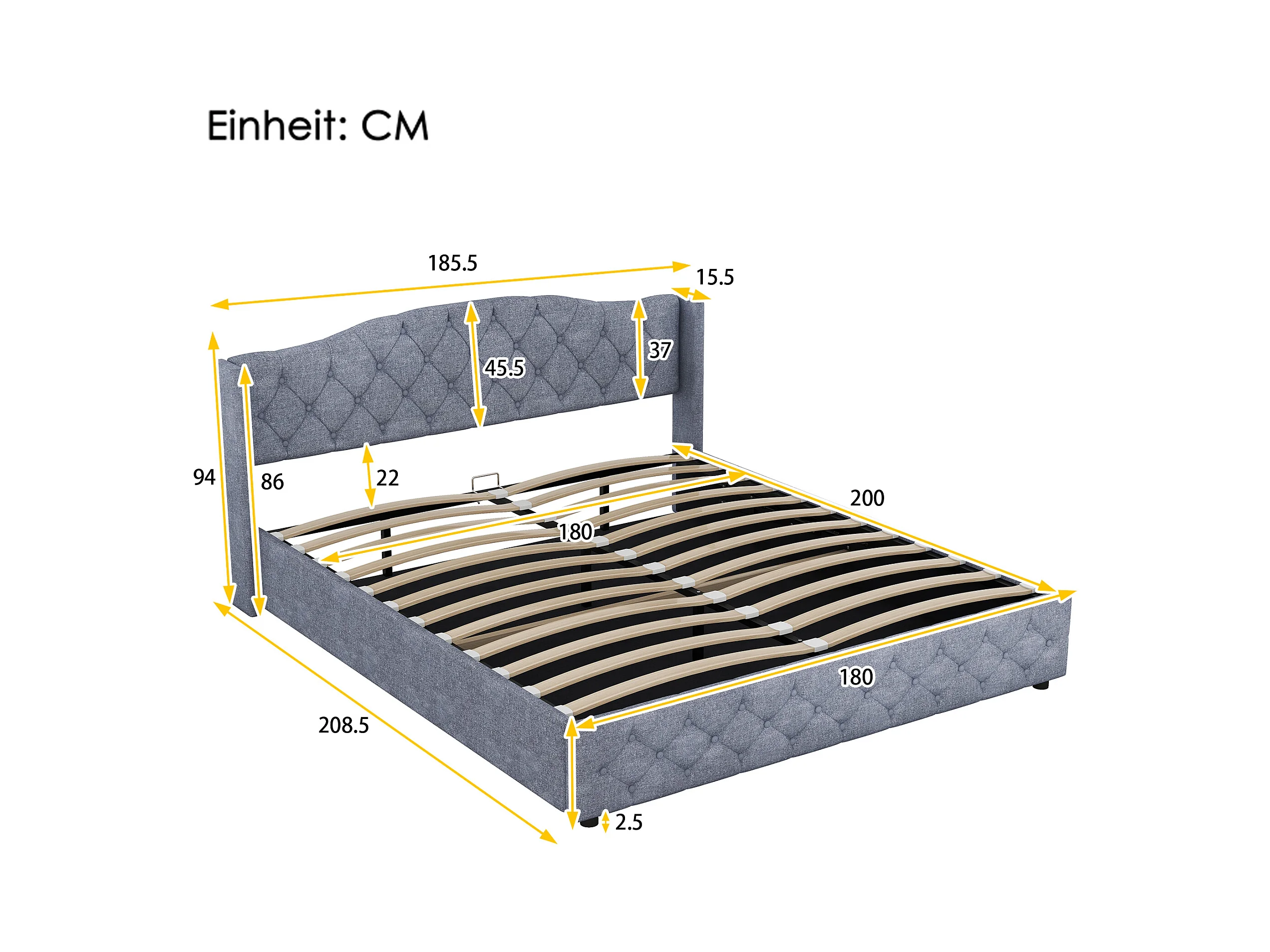 Lit Plat Multifonctionnel 180 X 200 cm Avec Rangement Hydraulique - Blanc