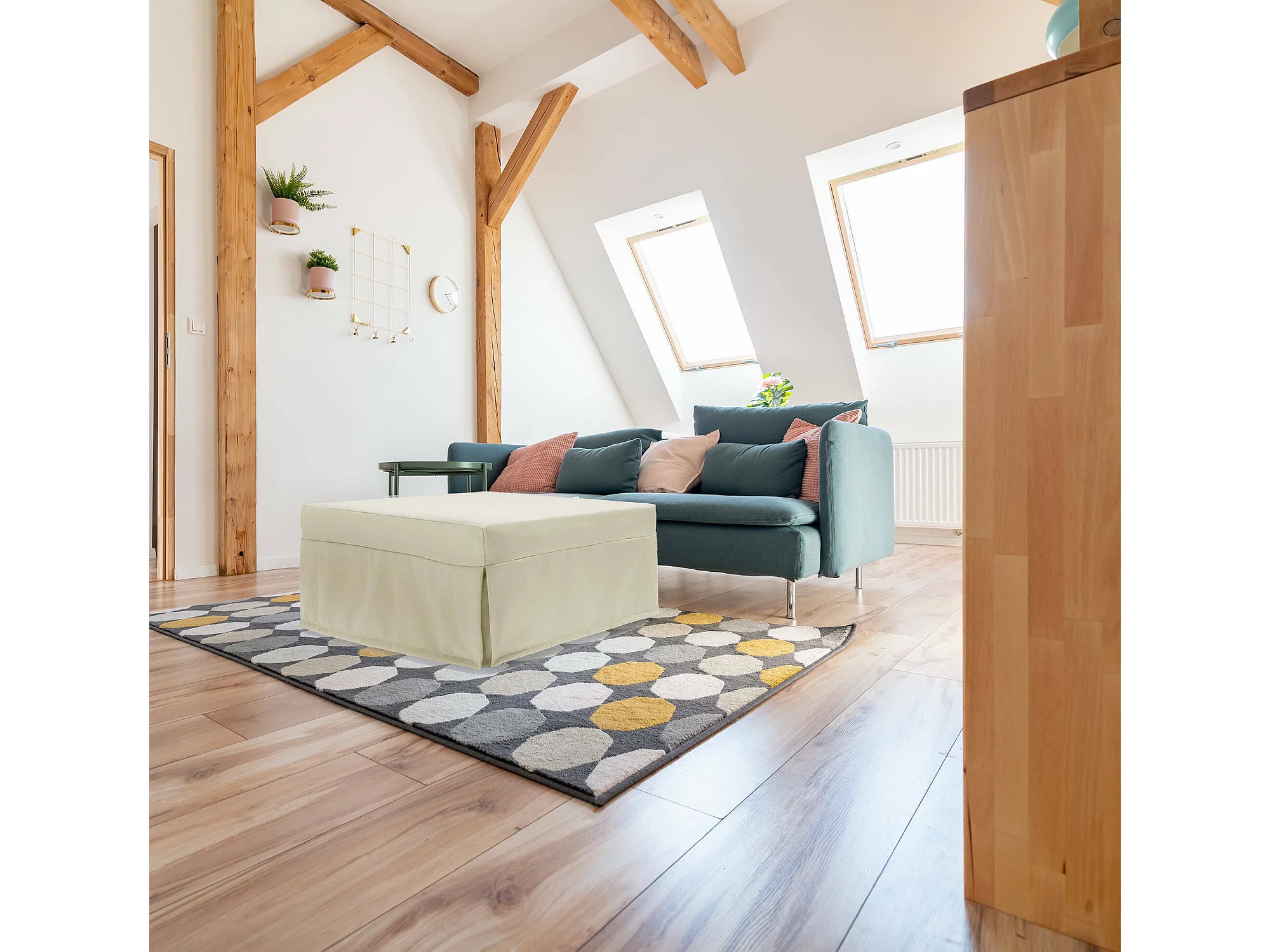Lit pliant Dabay, Pouf transformable en lit simple, Pouf de salon en tissu, 100% Made in Italy, 80x80h45 cm, Crème