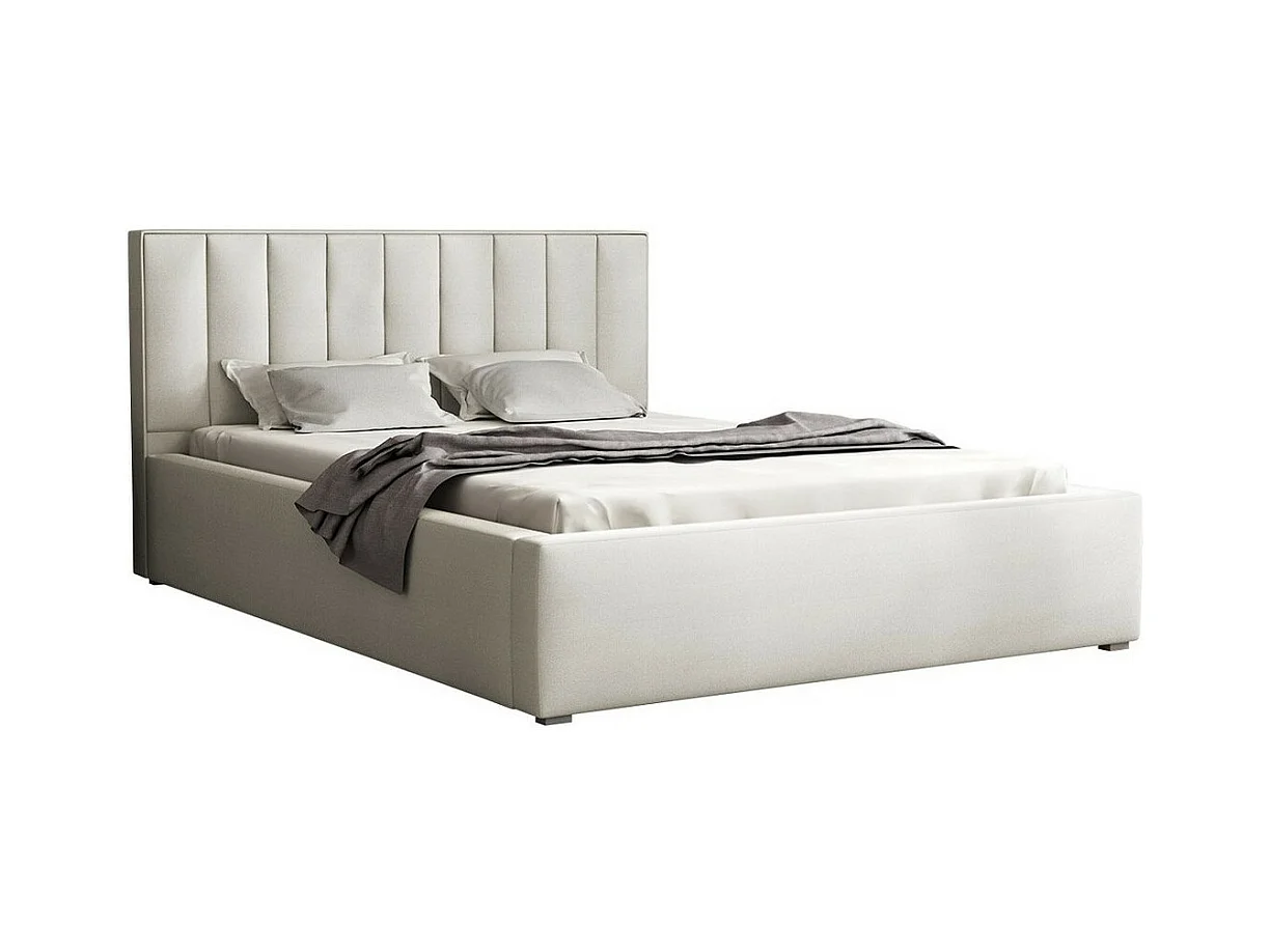Lit Pomona 111, Unique, Gris, 120x200, Tapisserie, Sommier à lattes, 140x223x93cm