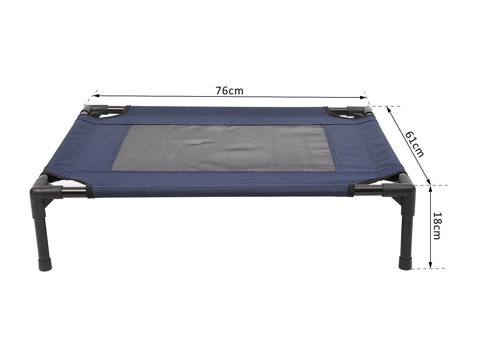 Lit pour chien chat lit de camp grand confort sur pieds tissu oxford textilène micro-perforé 76L x 61l x 18H cm bleu marine noir