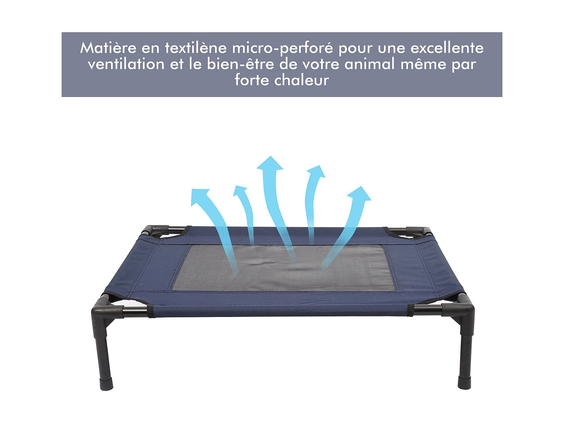 Lit sur pieds XXL pour chien chat lit de camp animal lit surélevé tissu oxford textilène micro-perforé 92L x 76l x 18H cm bleu marine