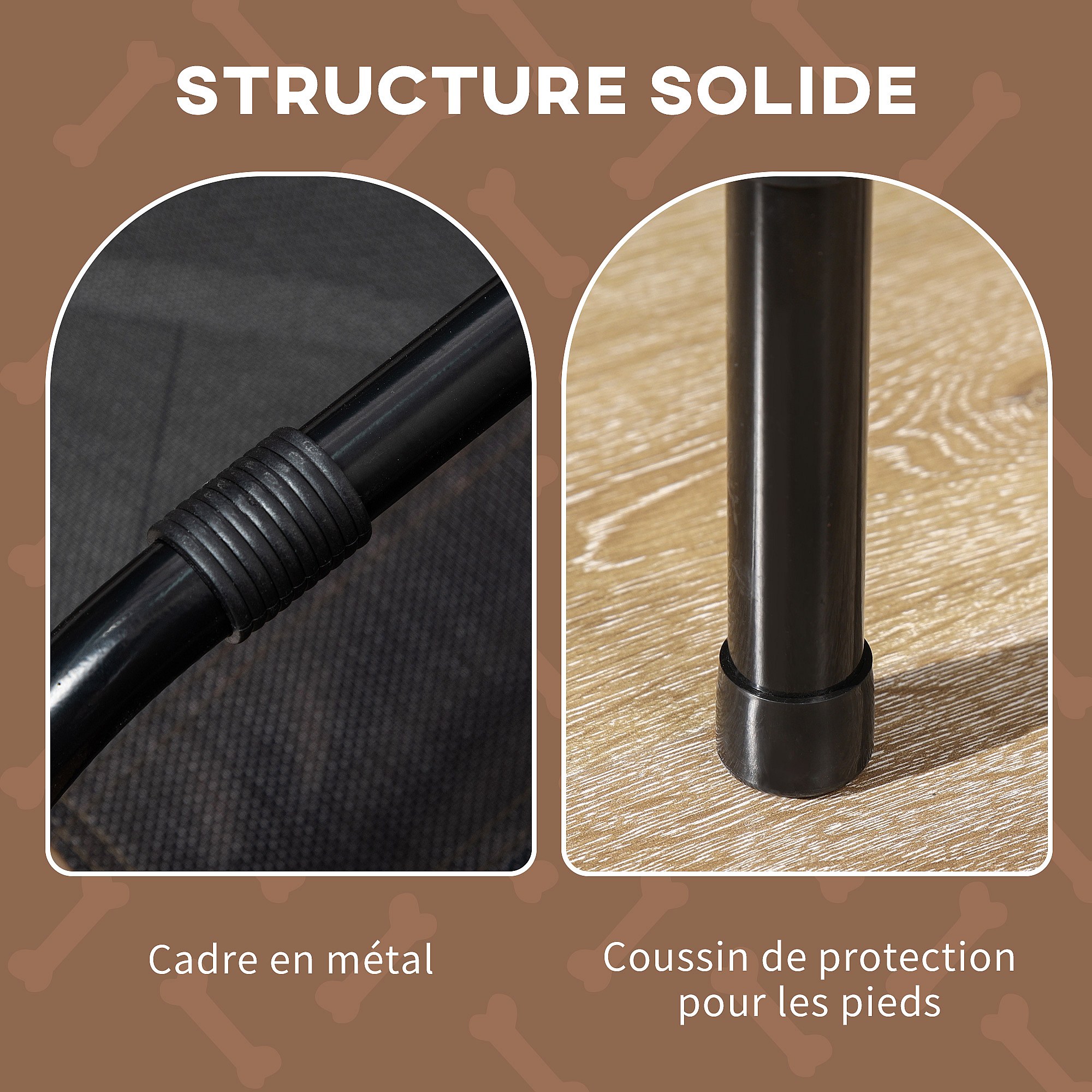 Lit pour chien chat sur pieds tissu oxford textilène micro-perforé 76L x 61l x 18H cm marron noir