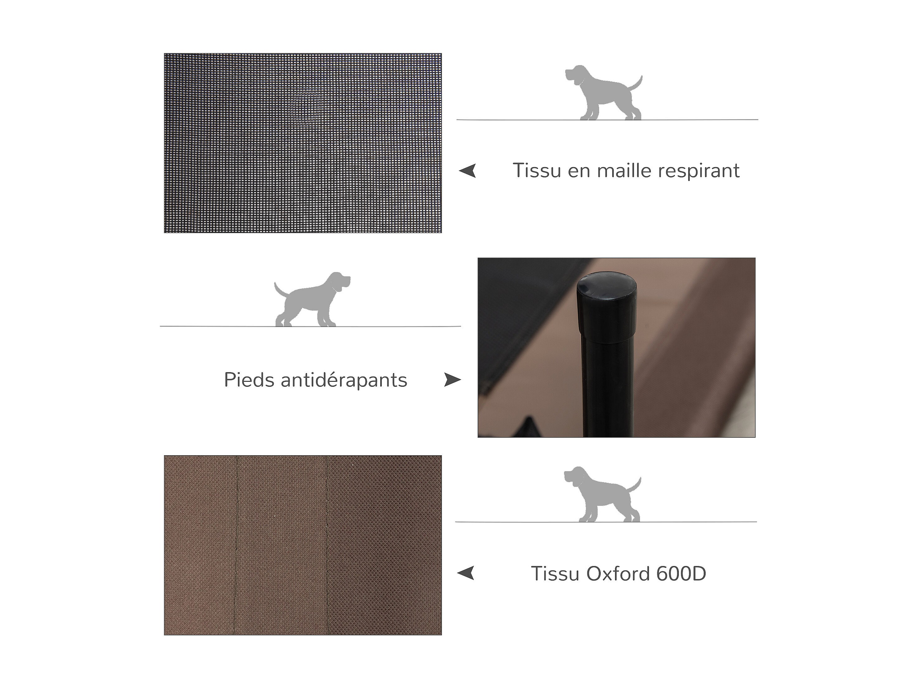 Lit sur pieds pour chien chat lit de camp animal lit surélevé Oxford textilène micro-perforé dim. 92L x 76l x 18H cm marron