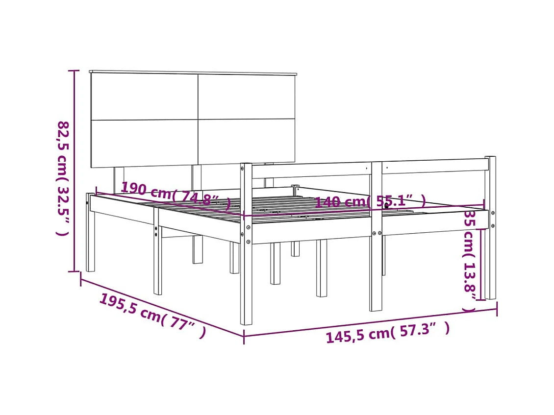 Lit pour personne âgée sans matelas 140x190 cm bois massif