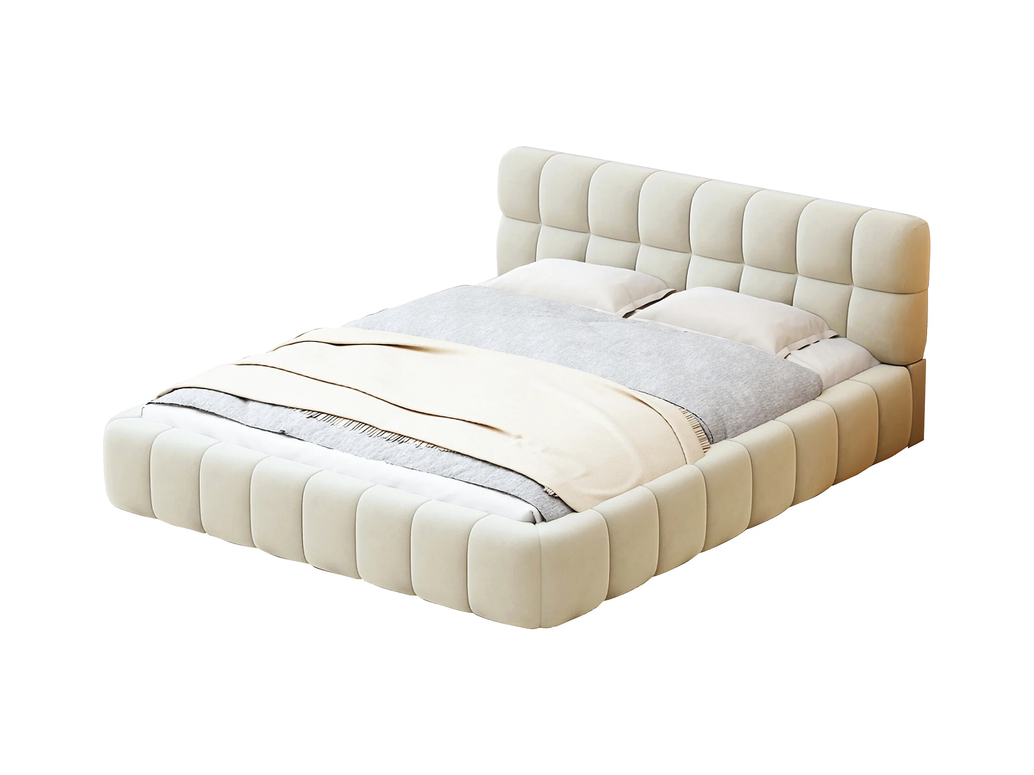 Lit rembourré 140 x 190 cm, lit jeune, lit double avec dossier moelleux, et bordure rembourrée, sommier à lattes lin beige (matelas non inclus)