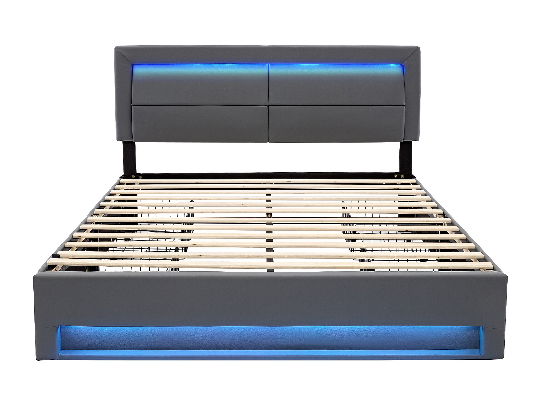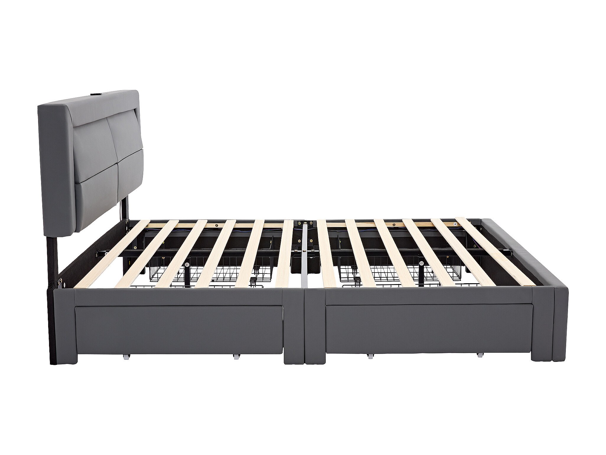 Lit rembourré 140 x 200 cm avec ports USB, éclairage LED et 4 tiroirs de rangement, gris