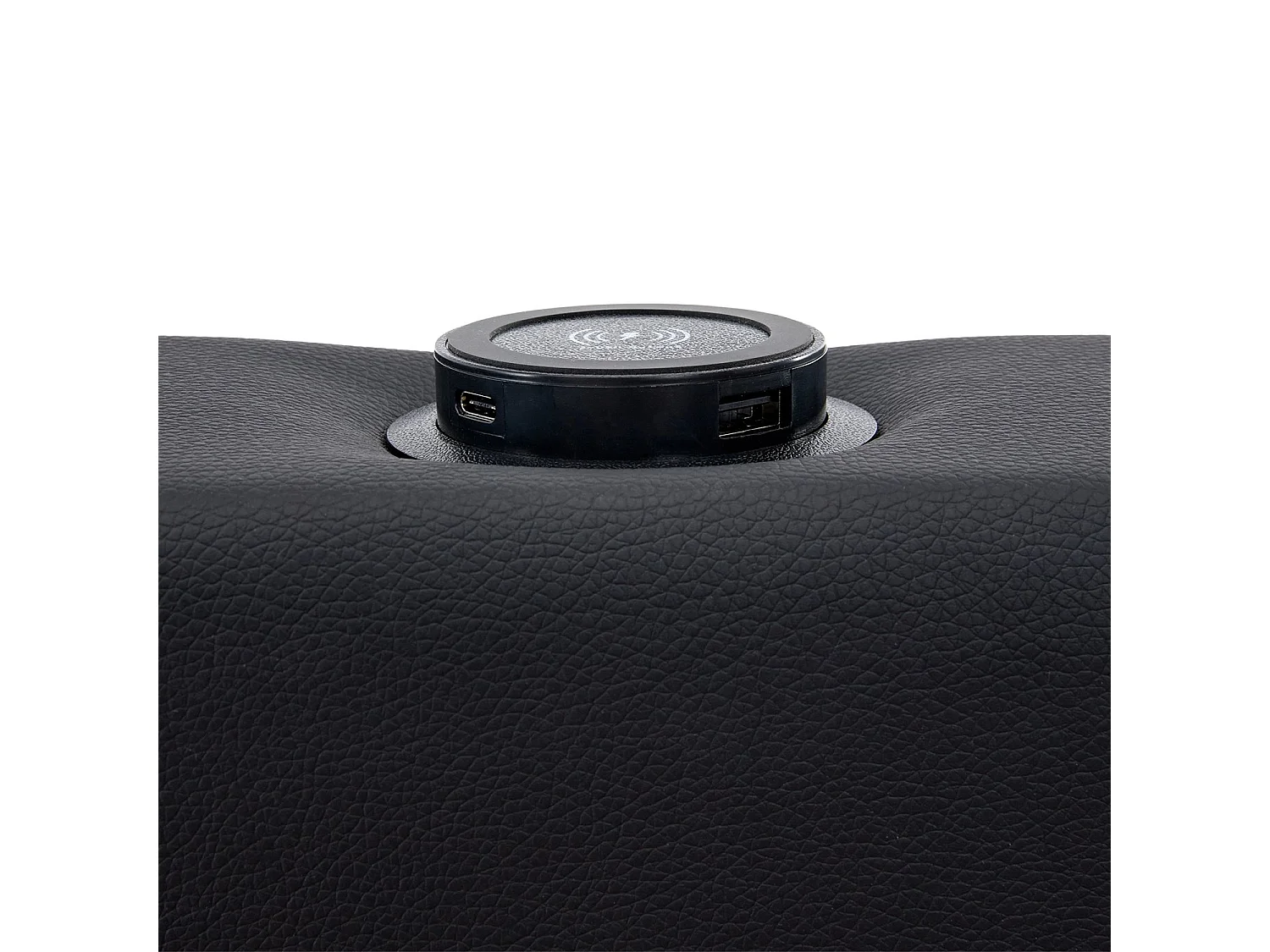 Lit rembourré 140x190 cm, avec port USB, éclairage LED, 4 tiroirs, sans matelas, PU, noir