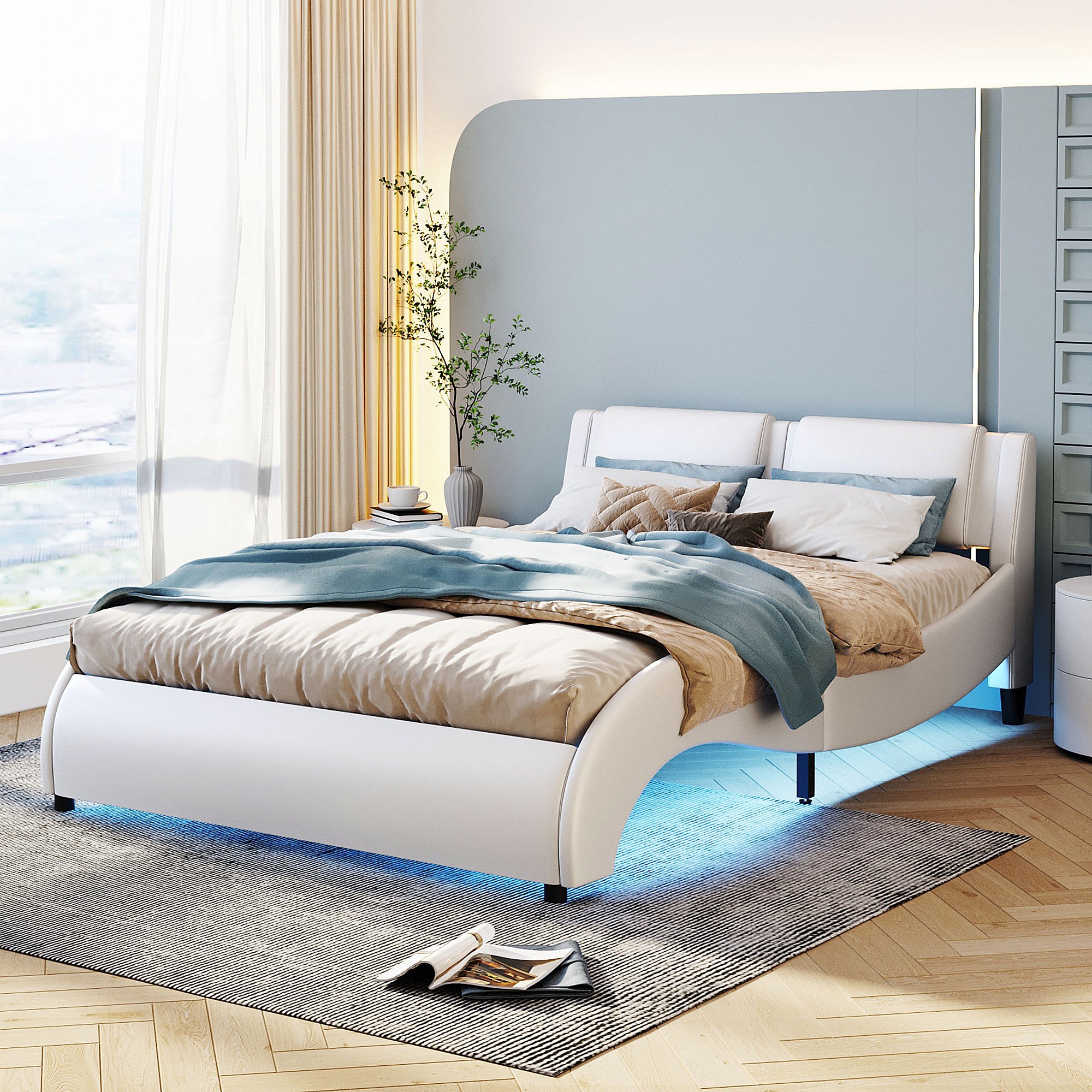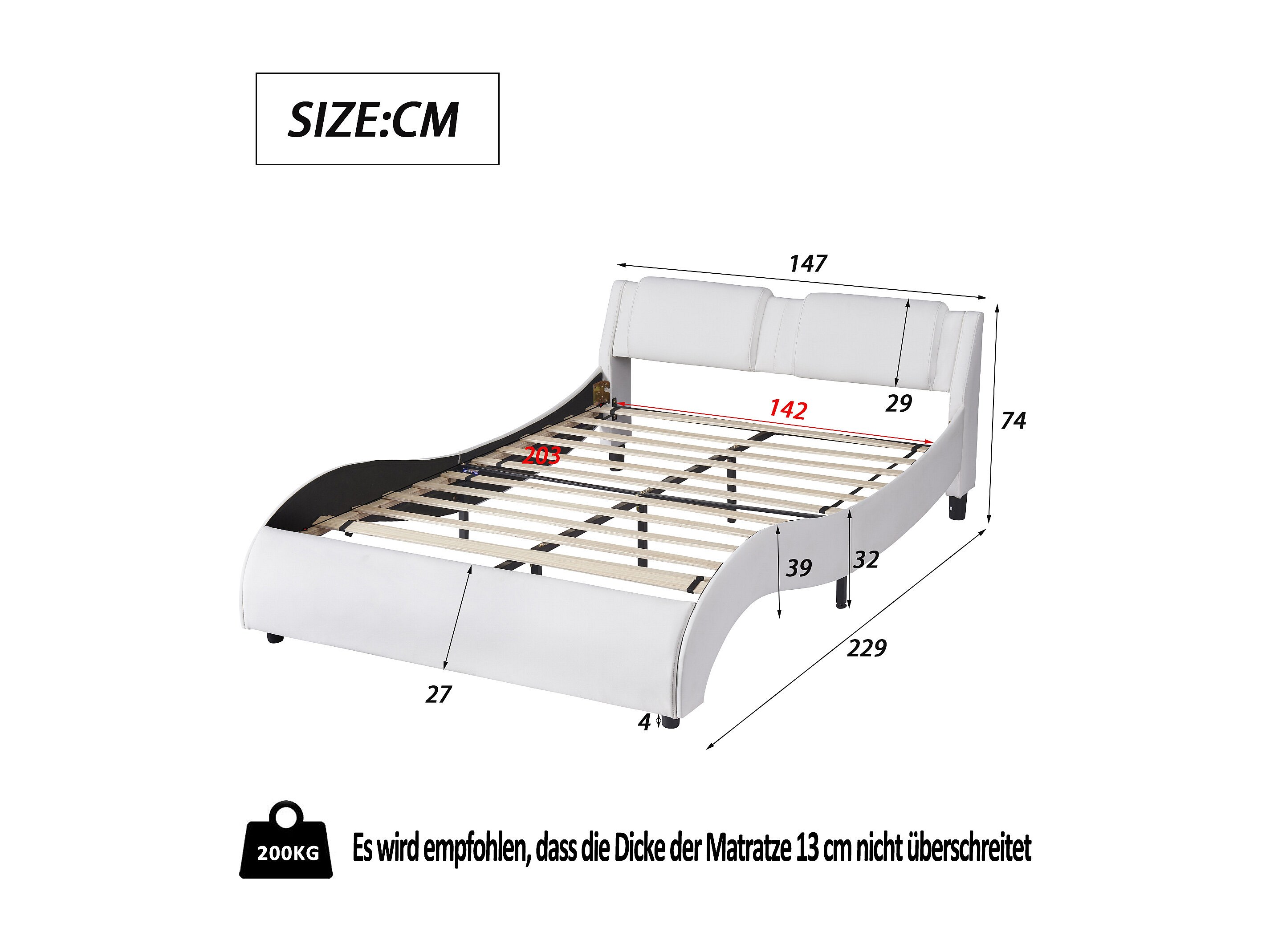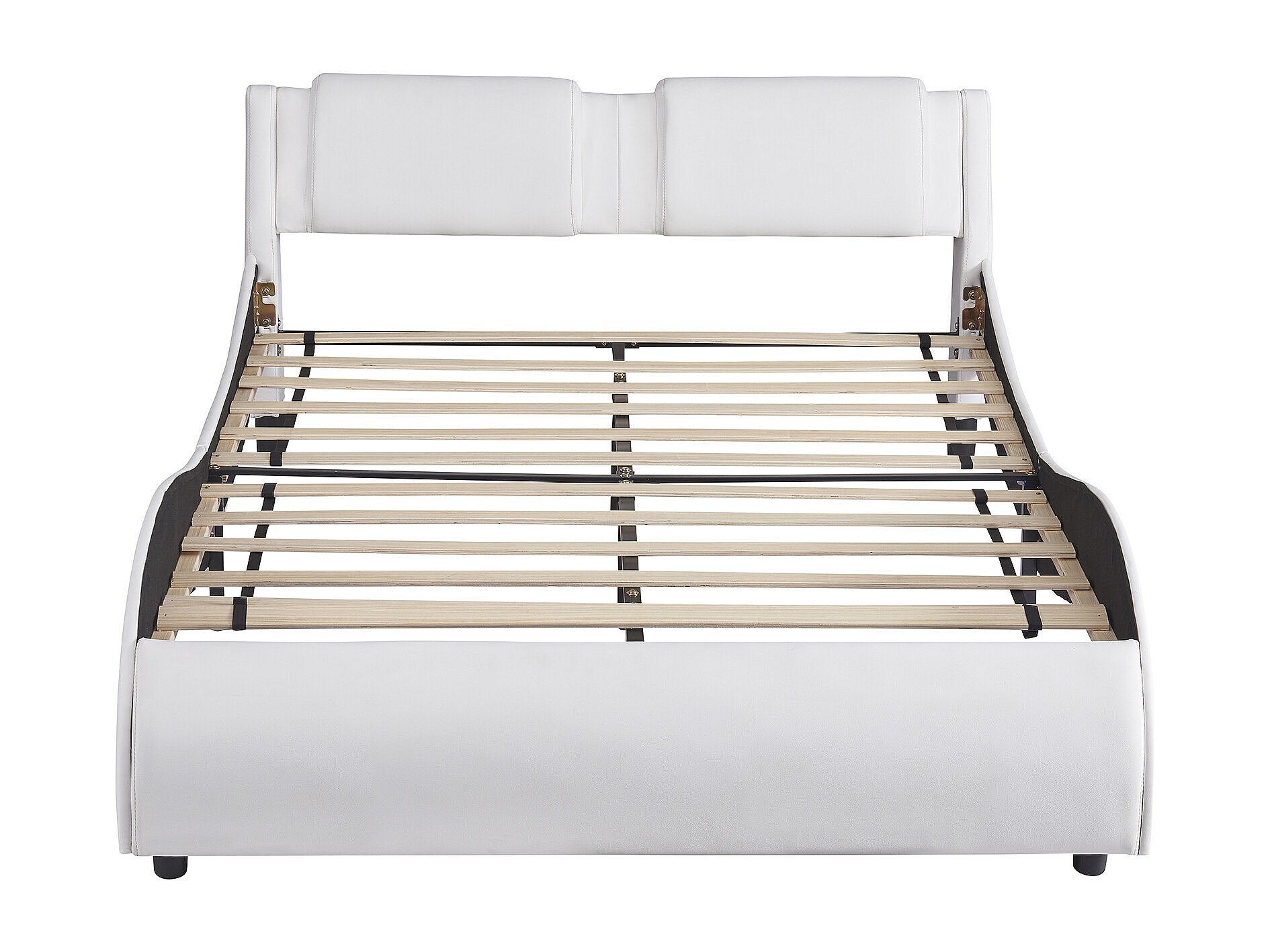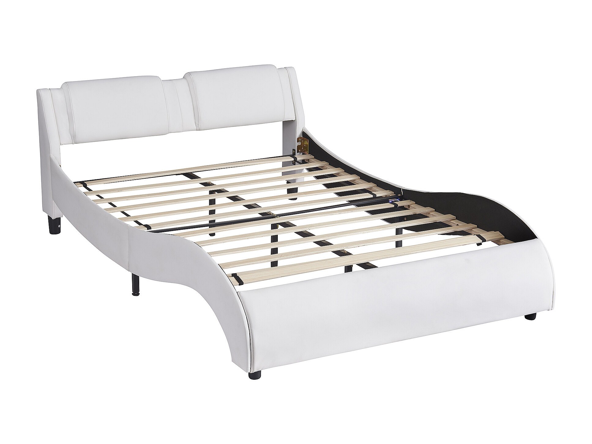 Lit rembourré 140x200 cm en simili cuir avec LED, sommier inclus, design épuré, couleur blanc