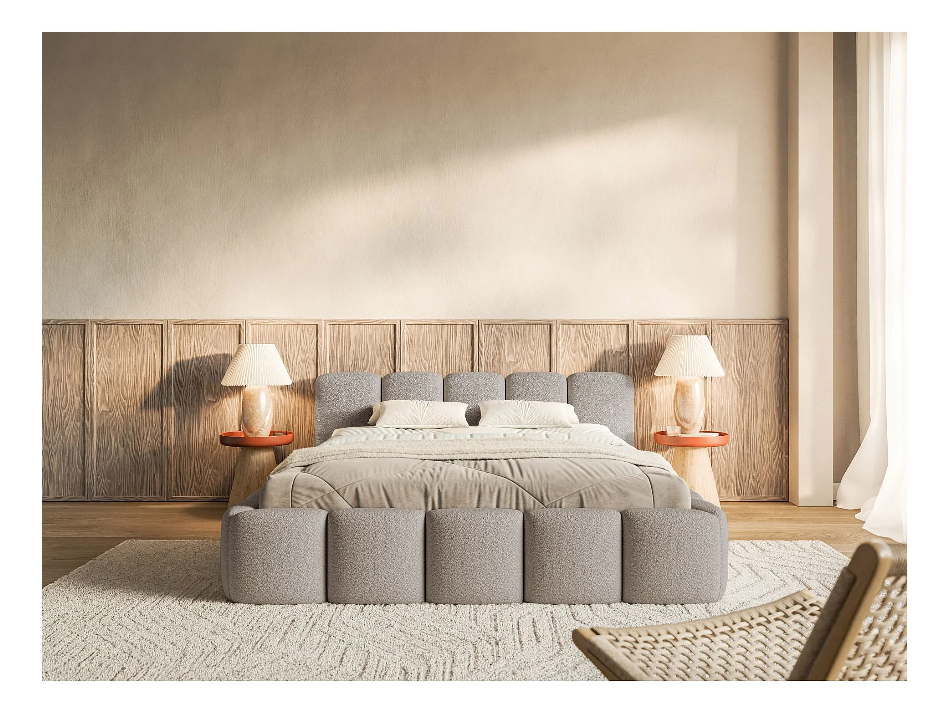 Lit rembourré 140x200 cm - gris clair- Cloudy Low