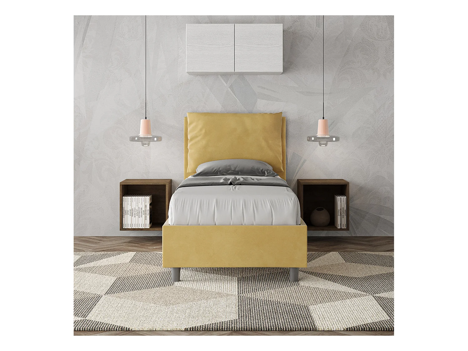 Lit rembourré Antea sans sommier 80x190 en microfibre ocre