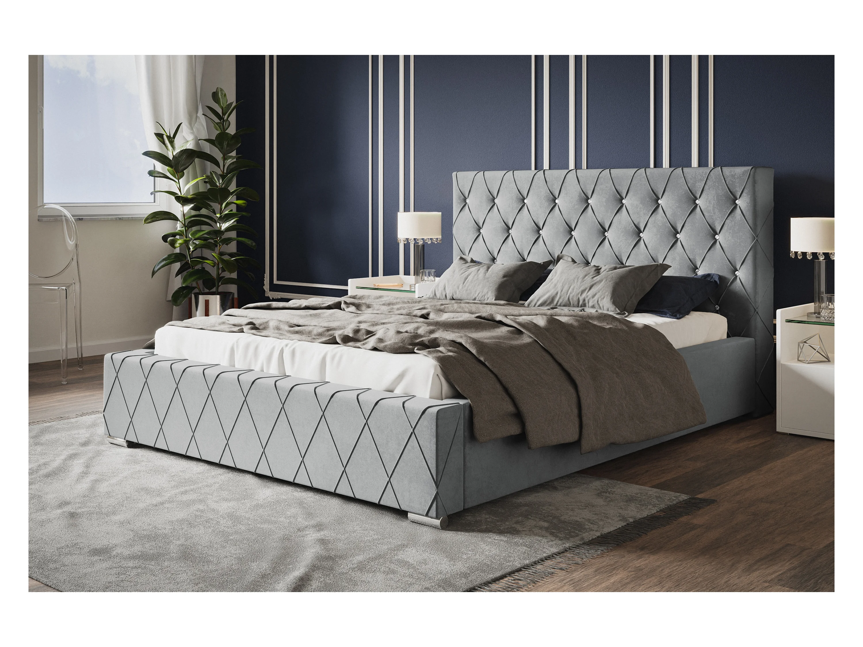 Lit rembourré Berlin avec tête de lit, 120x200 cm, lit double avec coffre de rangement et sommier à lattes en bois, tissu velours, couleur : gris