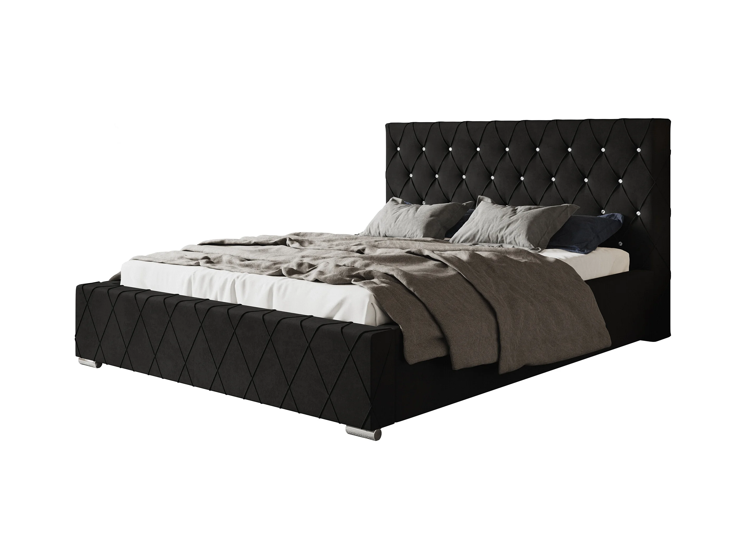 Lit rembourré Berlin avec tête de lit, 120x200 cm, lit double avec coffre de rangement et sommier à lattes en bois, tissu velours, couleur : noir
