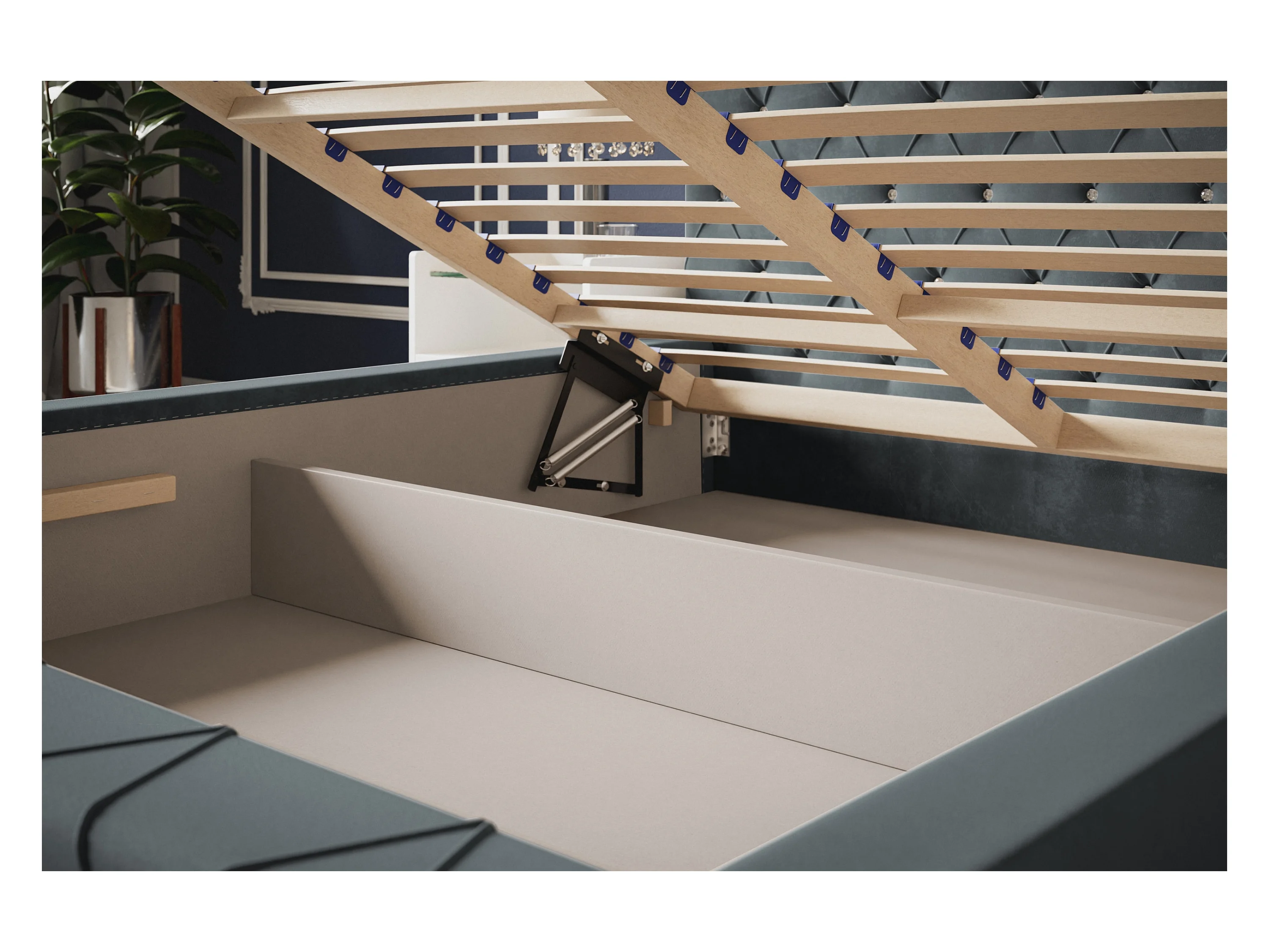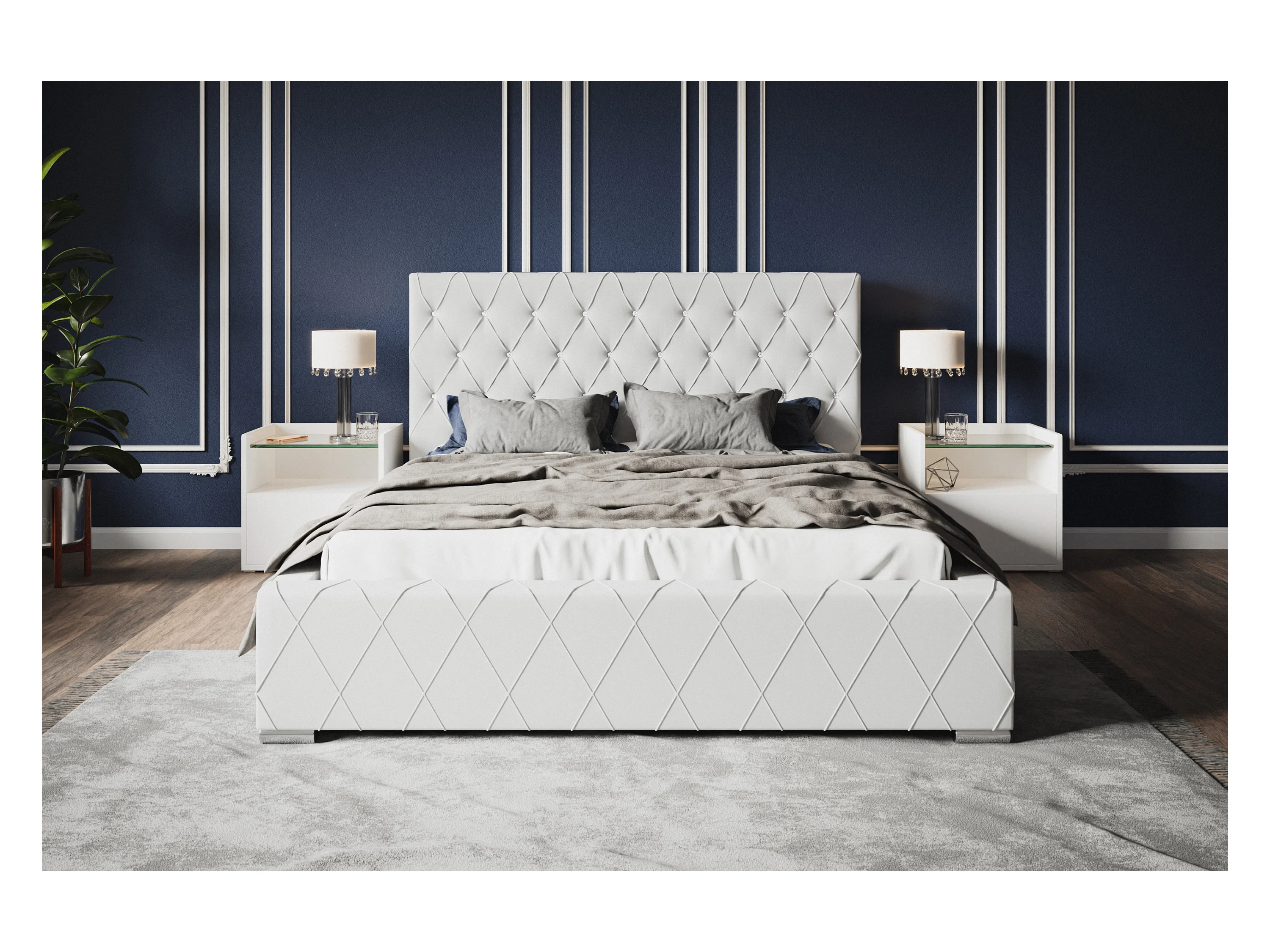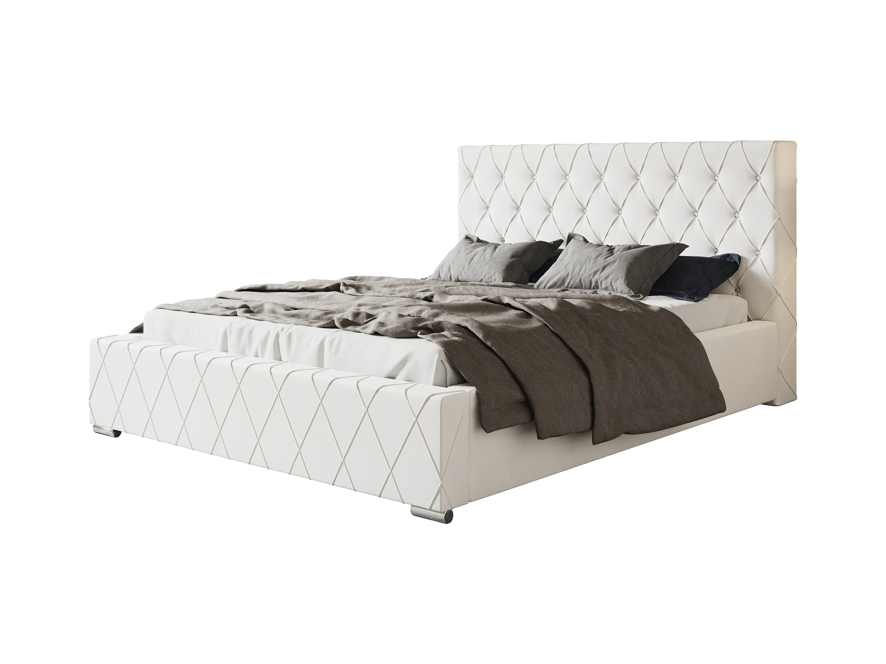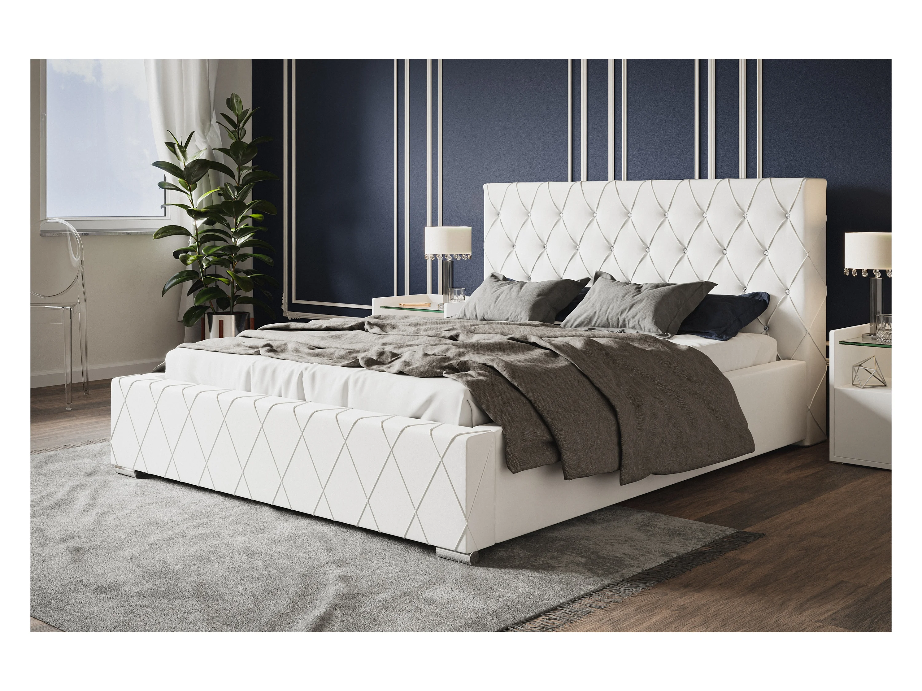 Lit rembourré Berlin avec tête de lit, 140x200 cm, lit double avec coffre de rangement et sommier à lattes en bois, similicuir, couleur : blanc