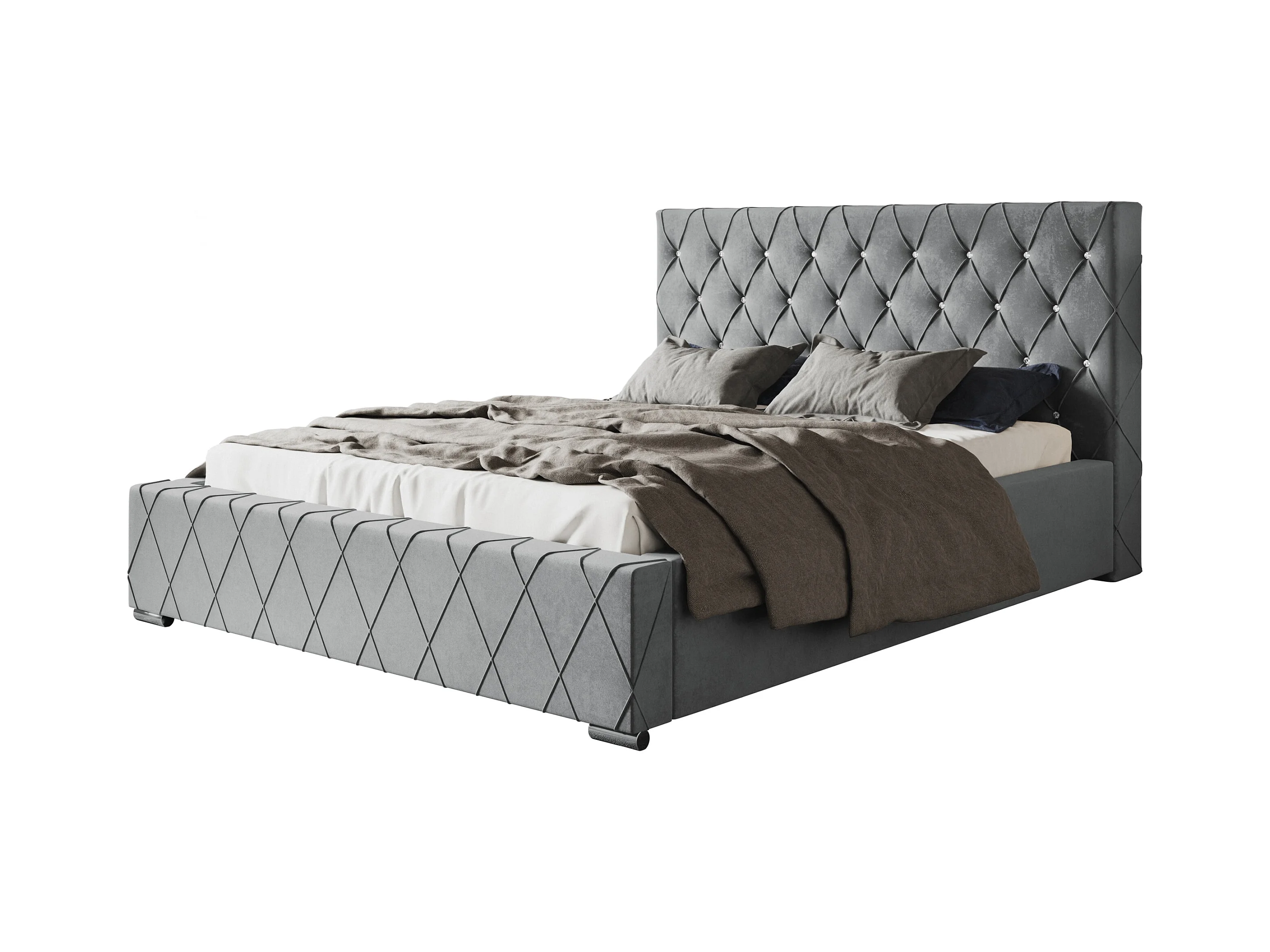 Lit rembourré Berlin avec tête de lit, 140x200 cm, lit double avec coffre de rangement et sommier à lattes en bois, tissu velours, couleur : gris