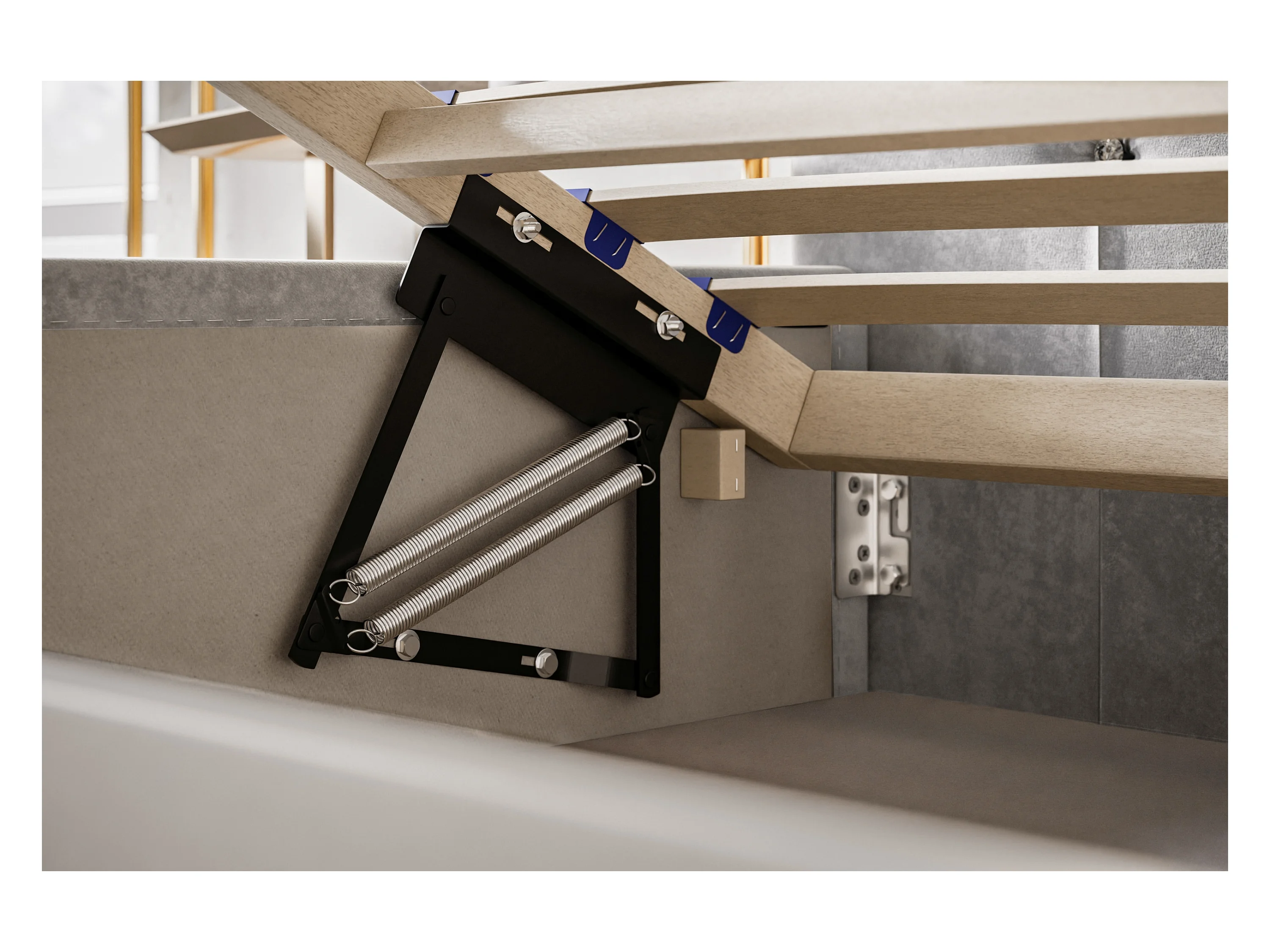 Lit rembourré Boston avec tête de lit, 120x200 cm, lit double avec coffre de rangement et sommier à lattes en bois, similicuir, couleur : blanc
