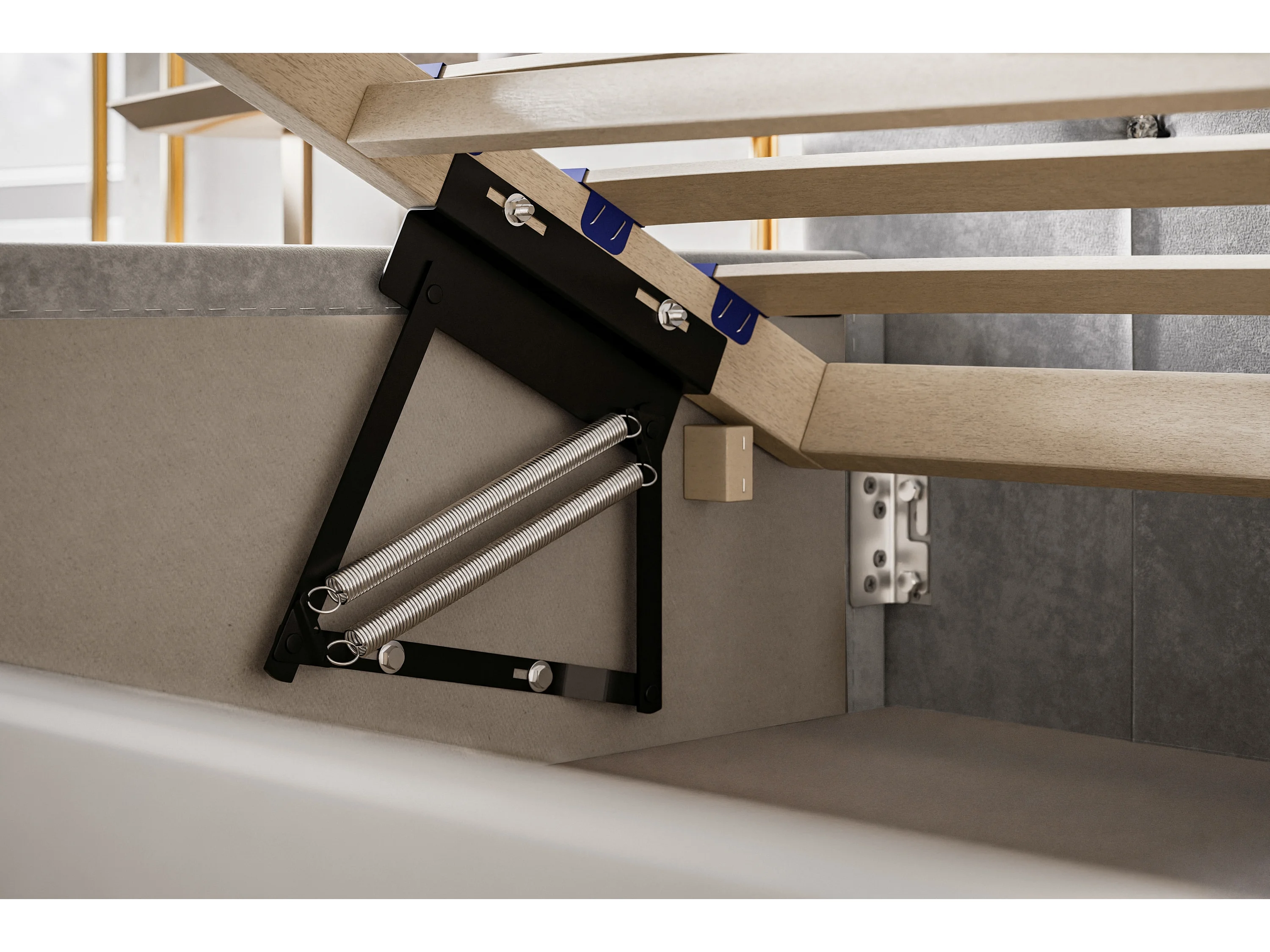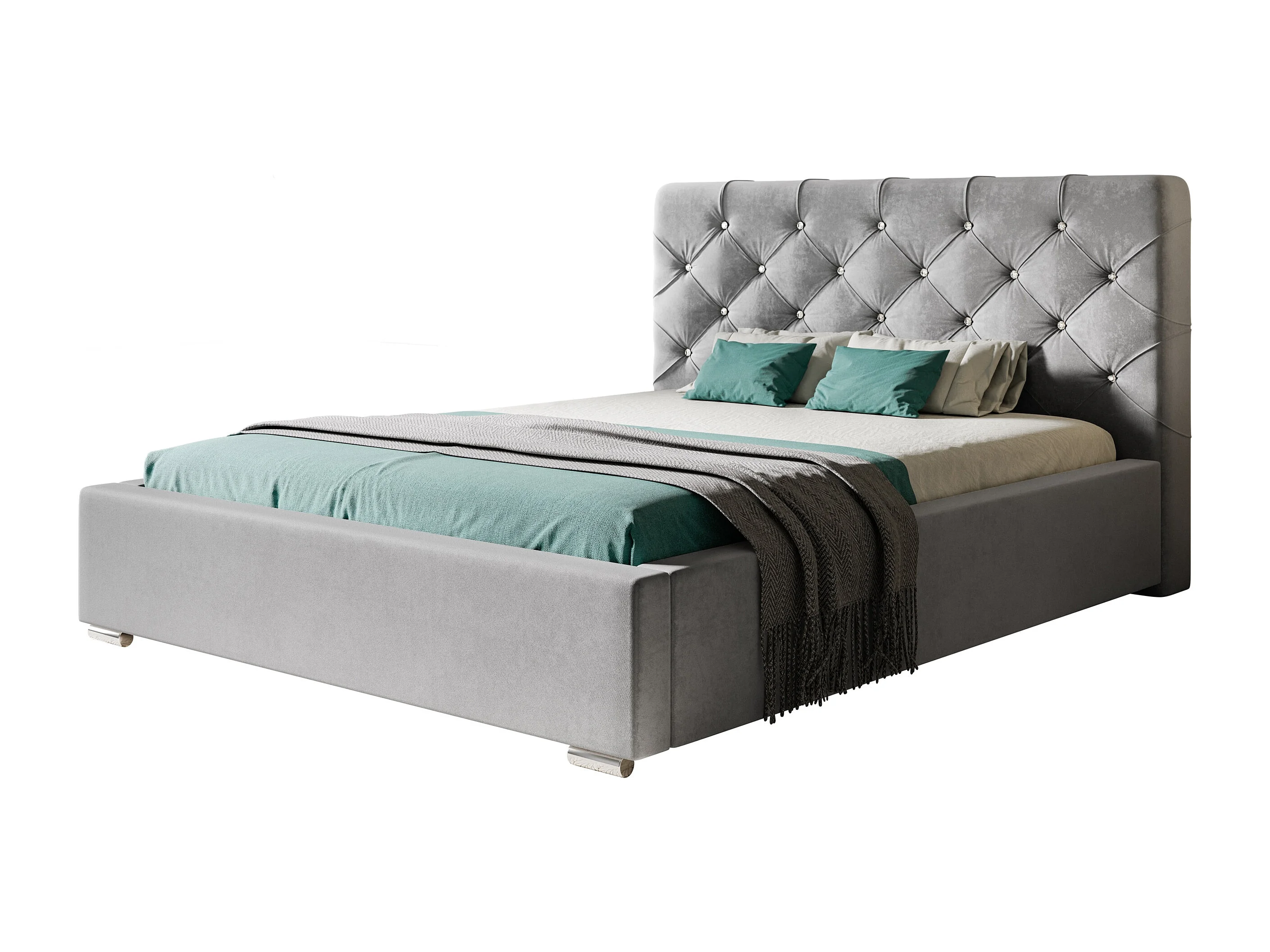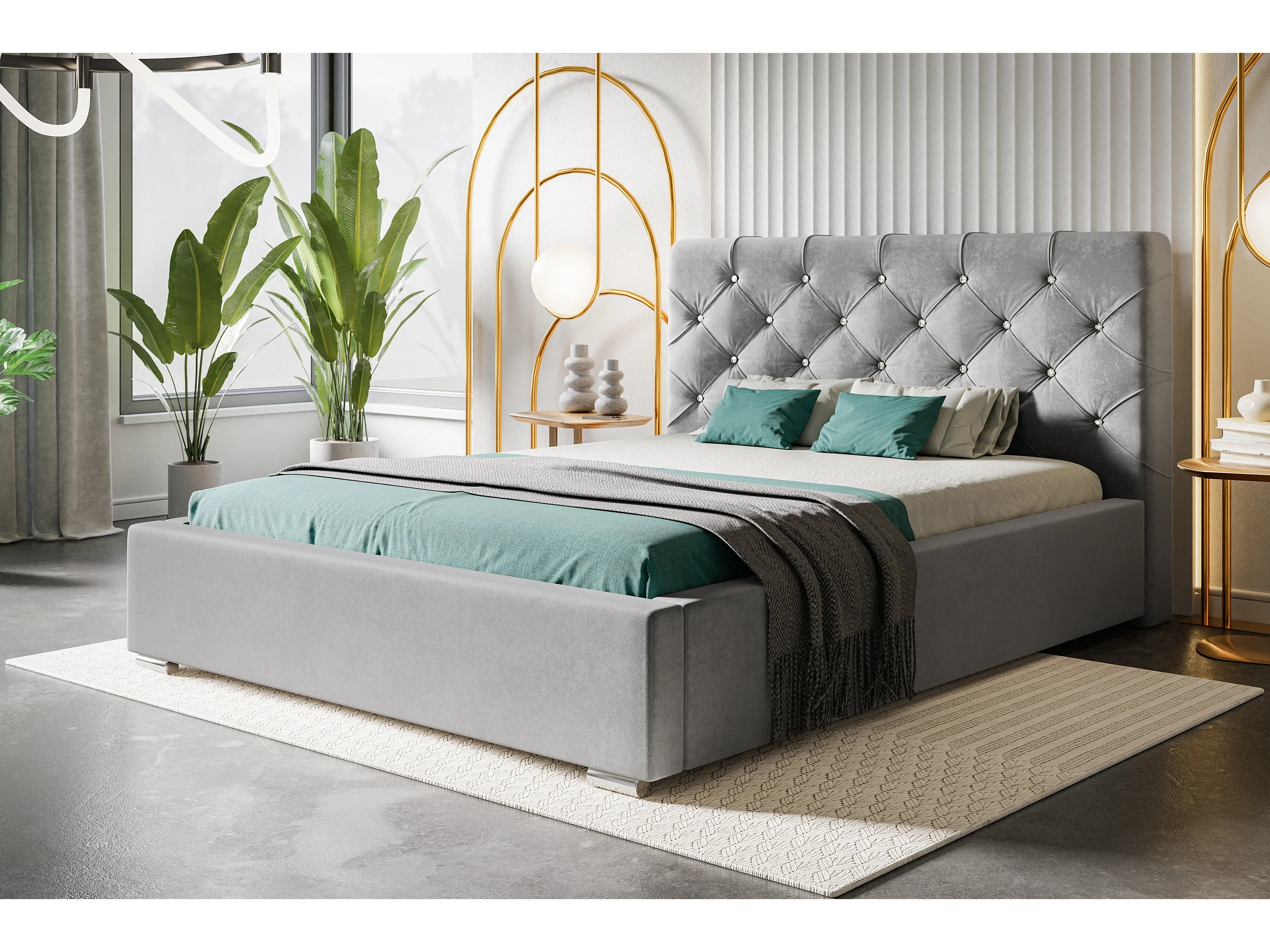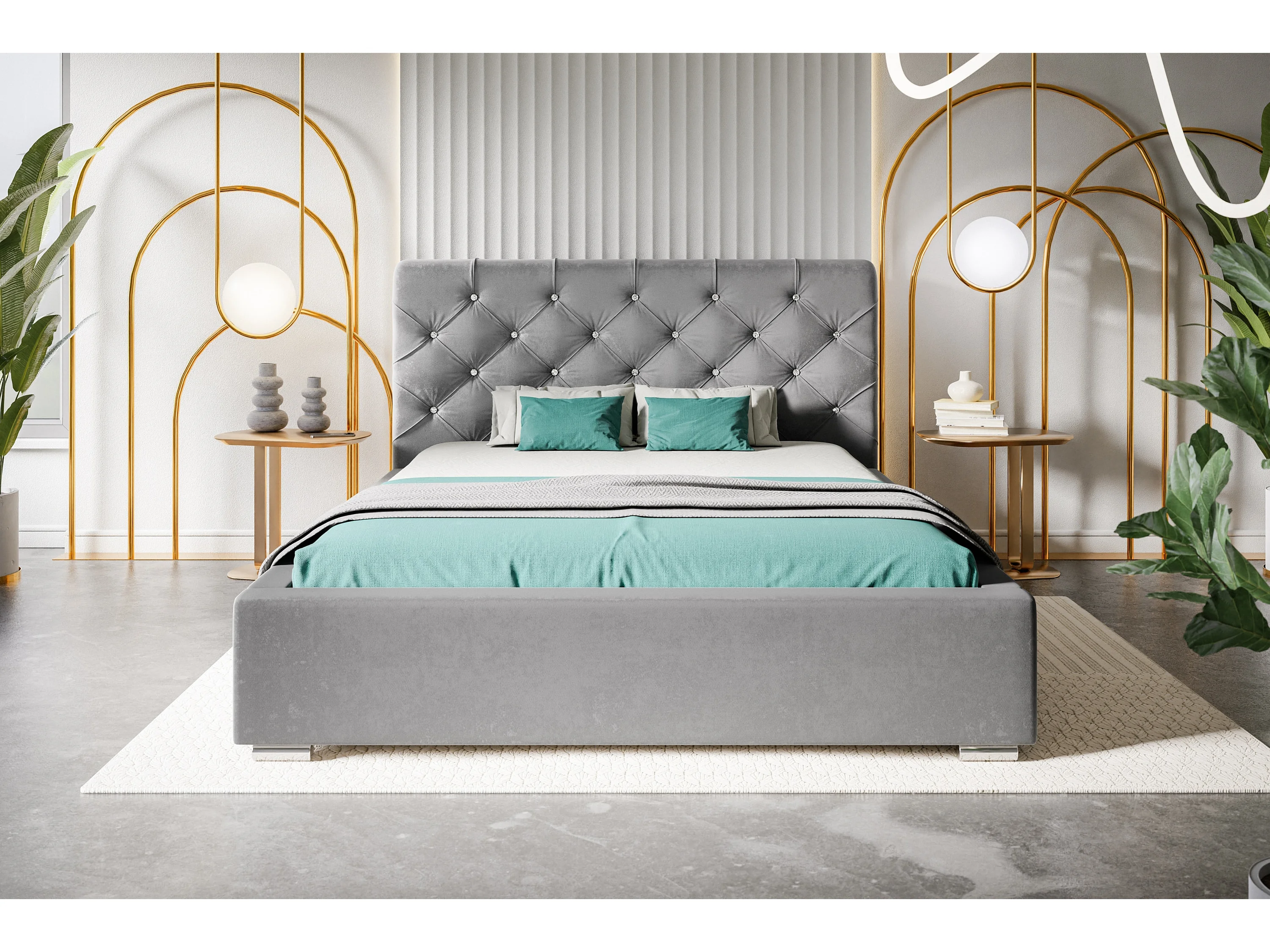 Lit rembourré Boston avec tête de lit, 160x200 cm, lit double avec coffre de rangement et sommier à lattes en bois, tissu velours, couleur : bleu foncé