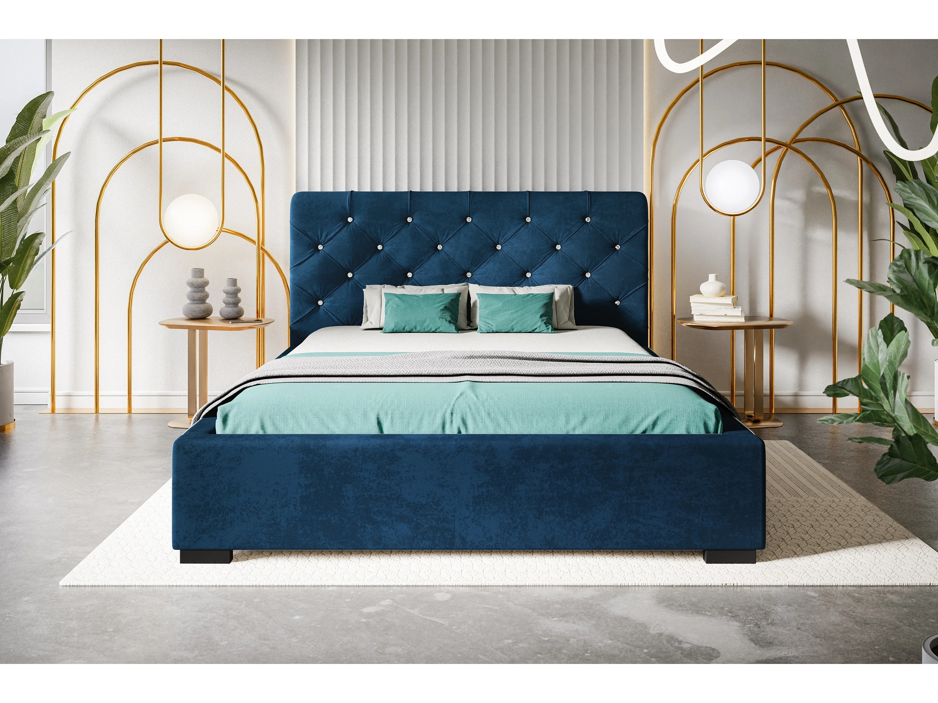Lit rembourré Boston avec tête de lit, 180x200 cm, lit double avec coffre de rangement et sommier à lattes en bois, tissu velours, couleur : gris