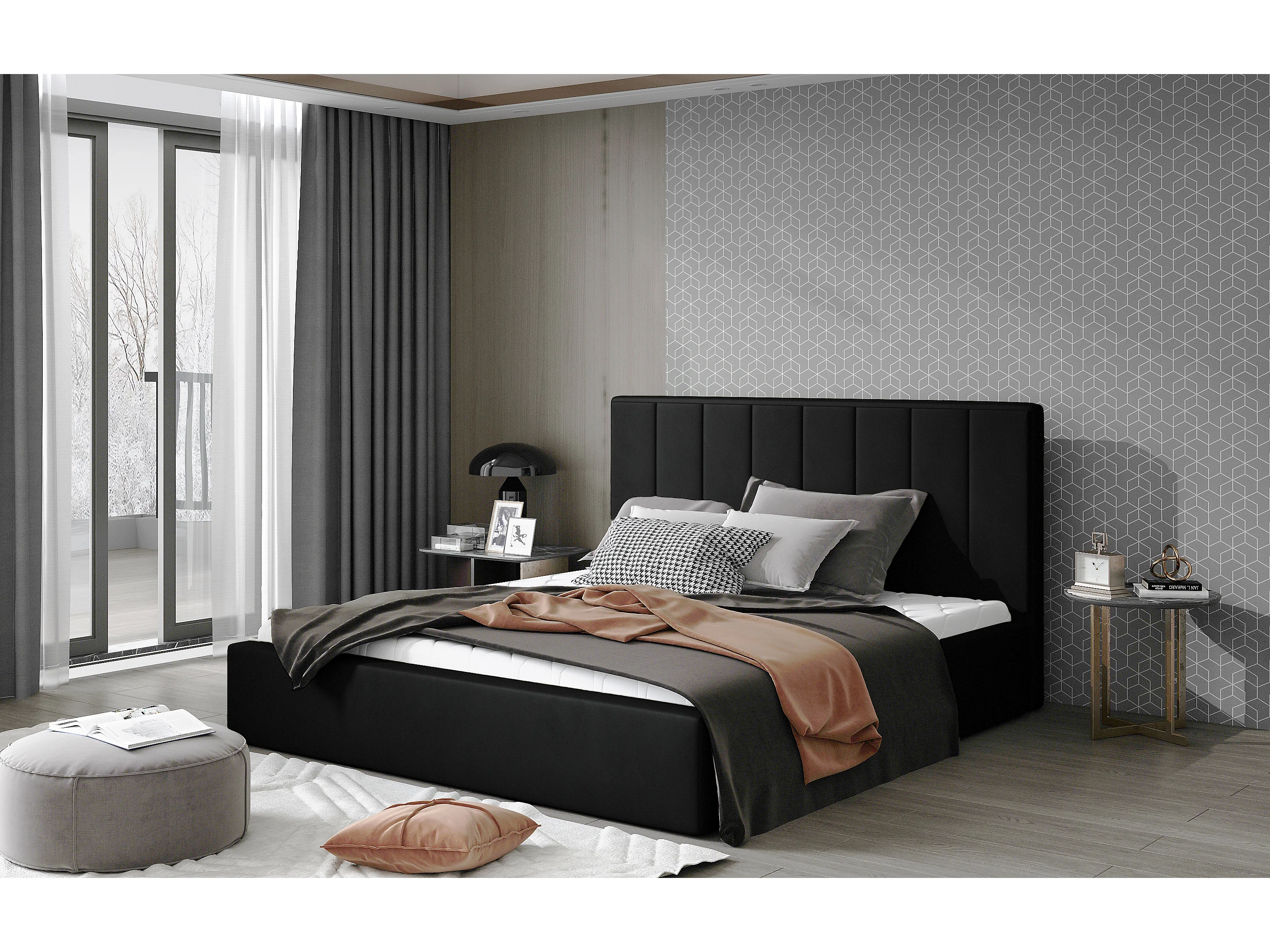 Lit rembourré de luxe velours Vareze-Couleur Noir-180x200-Version avec sommier