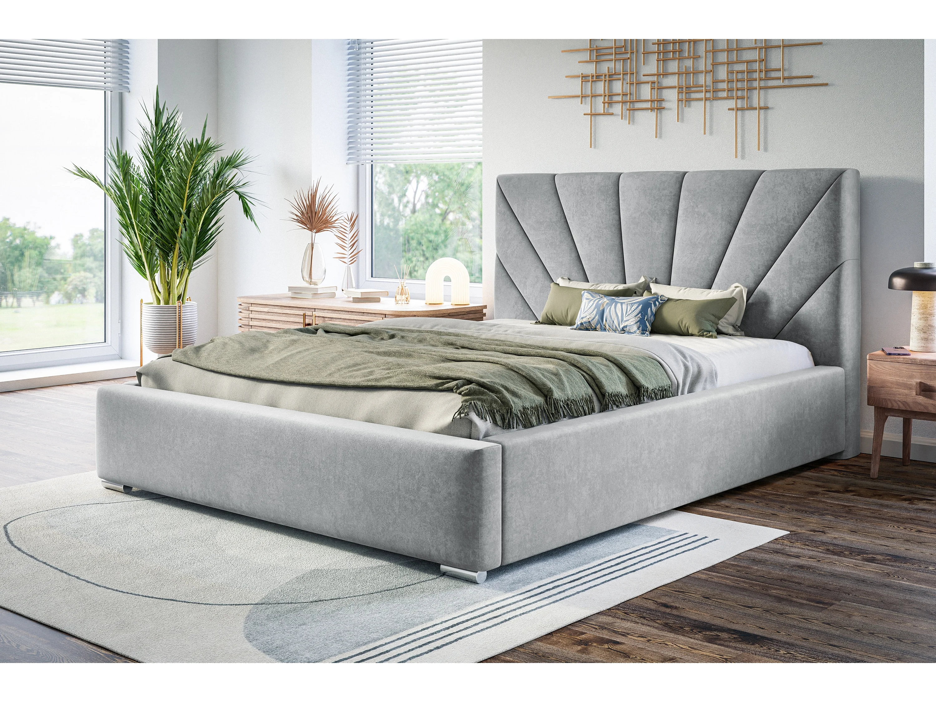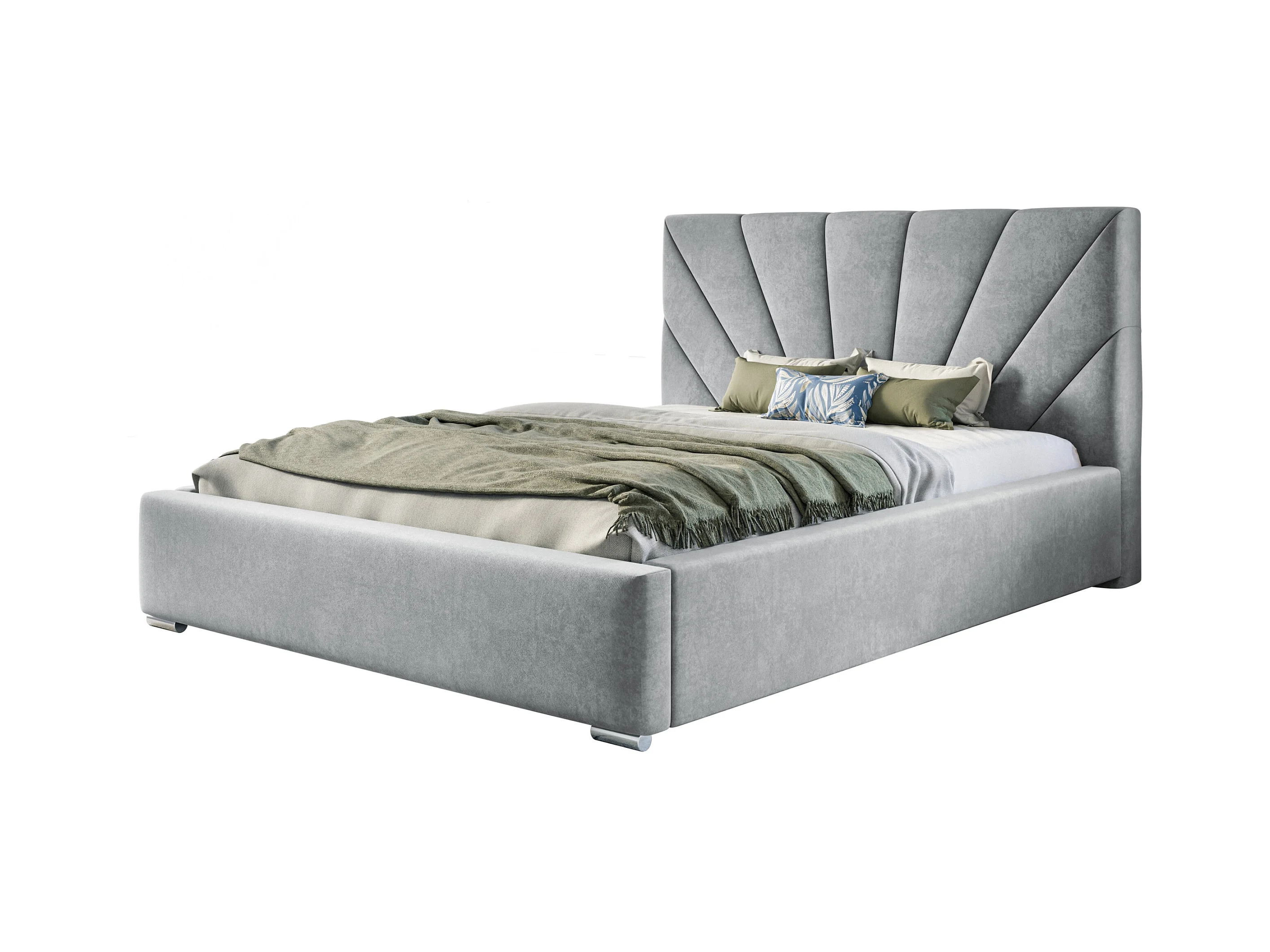 Lit rembourré Denver avec tête de lit, 140x200 cm, lit double avec coffre de rangement et sommier à lattes en bois, tissu velours, couleur : gris