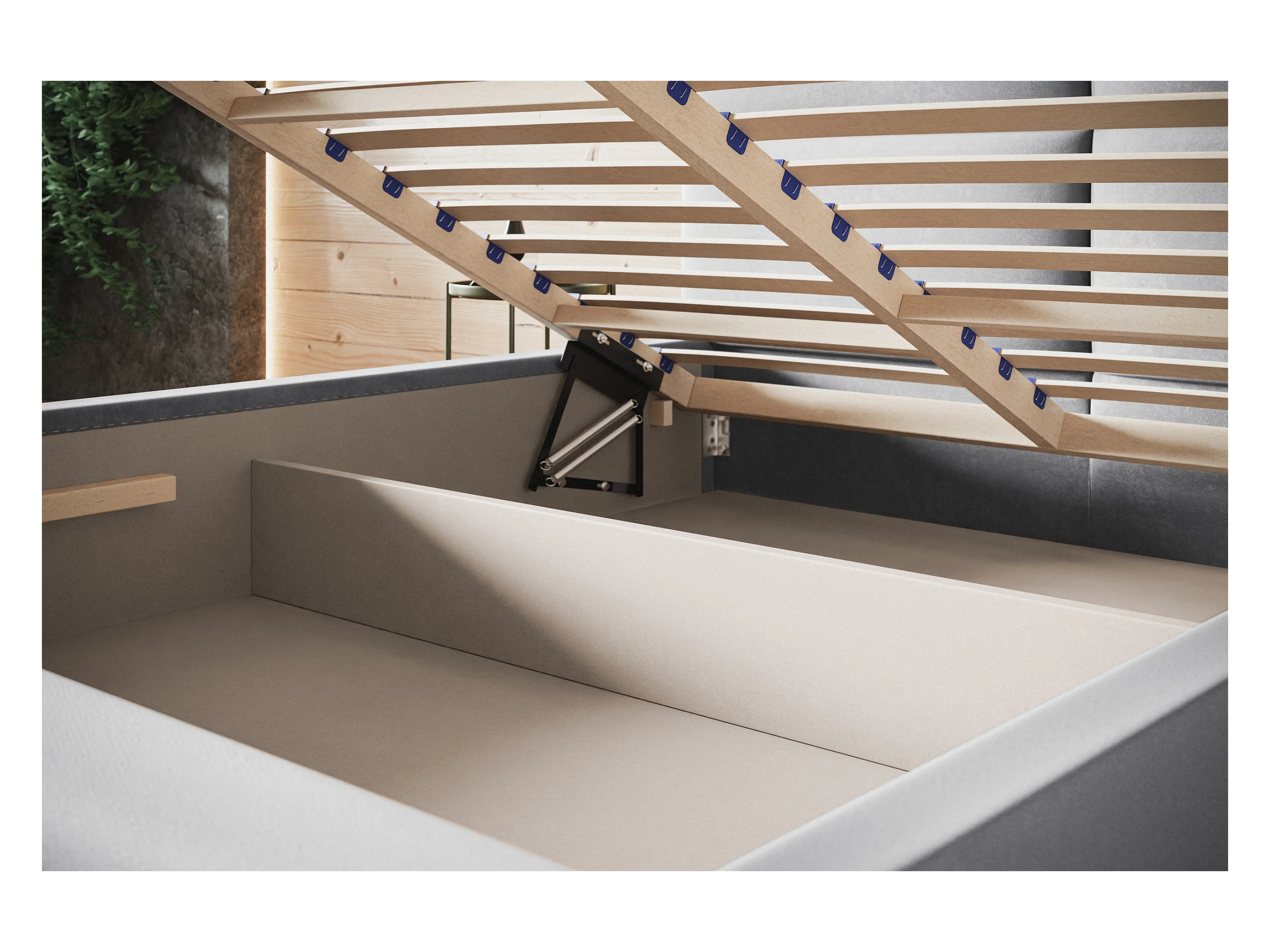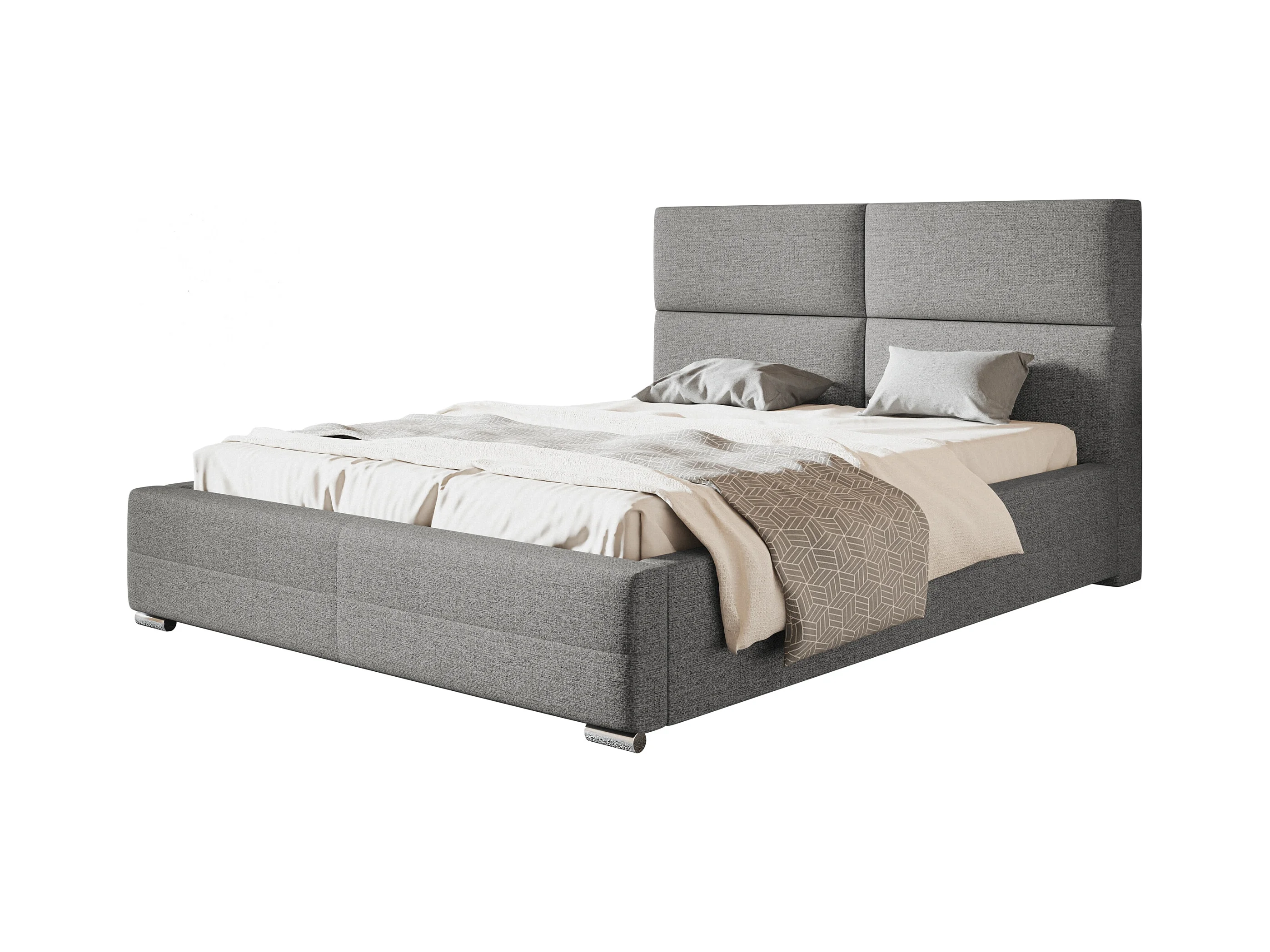 Lit rembourré Lisbonne avec tête de lit, 160x200 cm, lit double avec coffre de rangement et sommier à lattes en bois, tissu structuré, couleur : gris