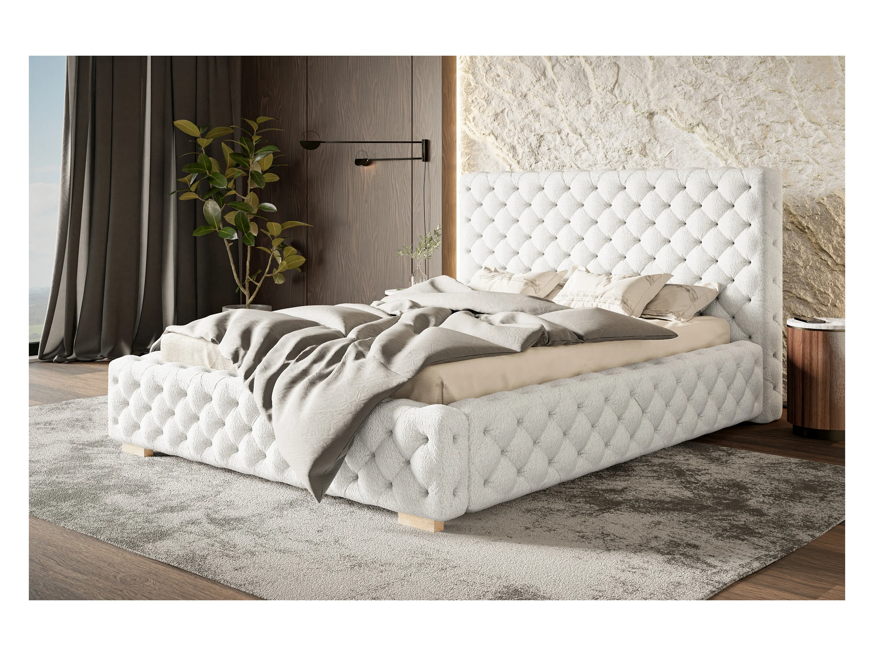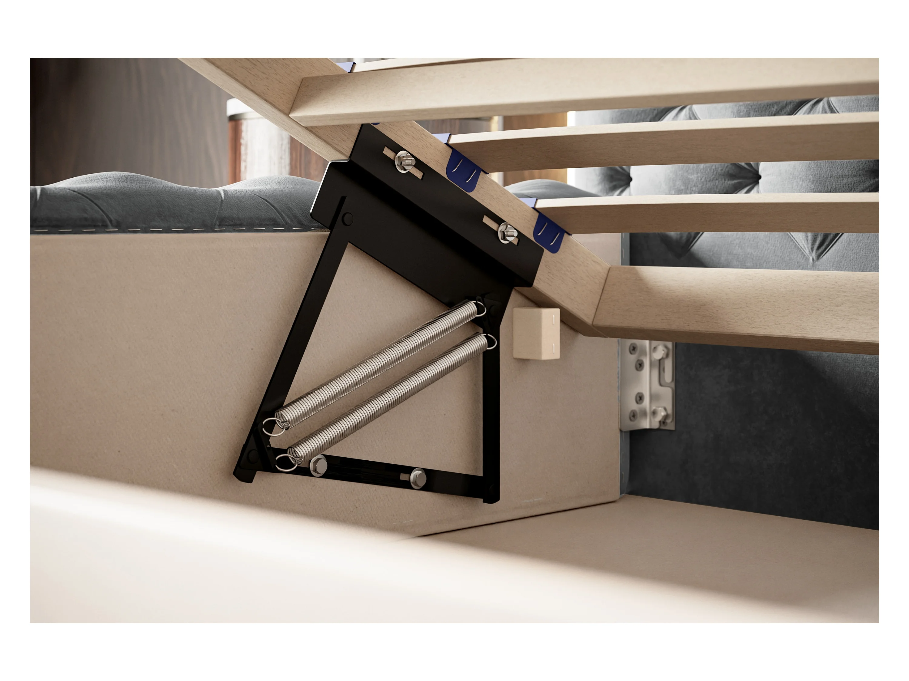 Lit rembourré Miami avec tête de lit, 140x200 cm, lit double avec coffre de rangement et sommier à lattes en bois, tissu velours, couleur : bleu clair