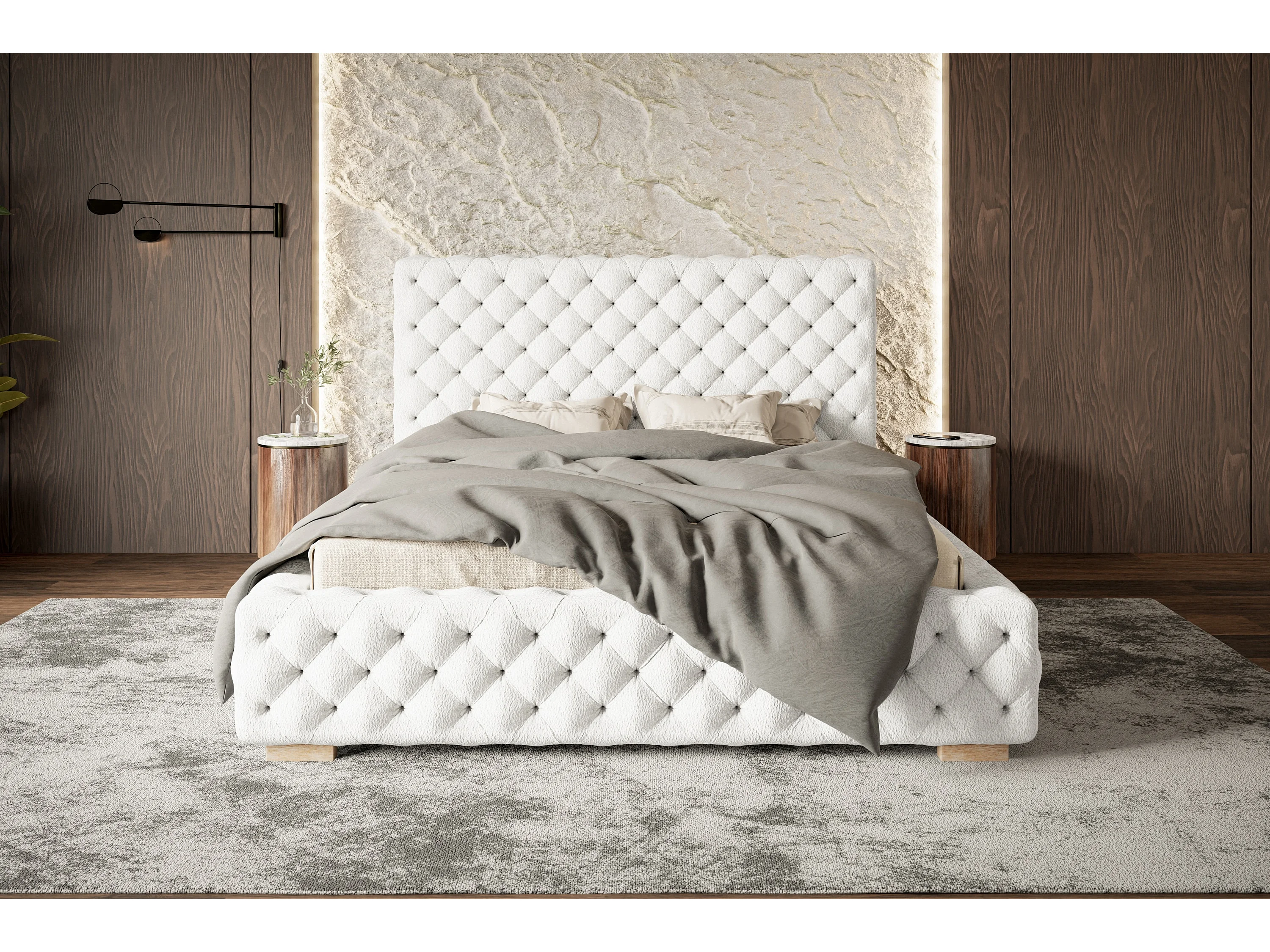 Lit rembourré Miami avec tête de lit, 160x200 cm, lit double avec coffre de rangement et sommier à lattes en bois, tissu velours, couleur : bleu clair