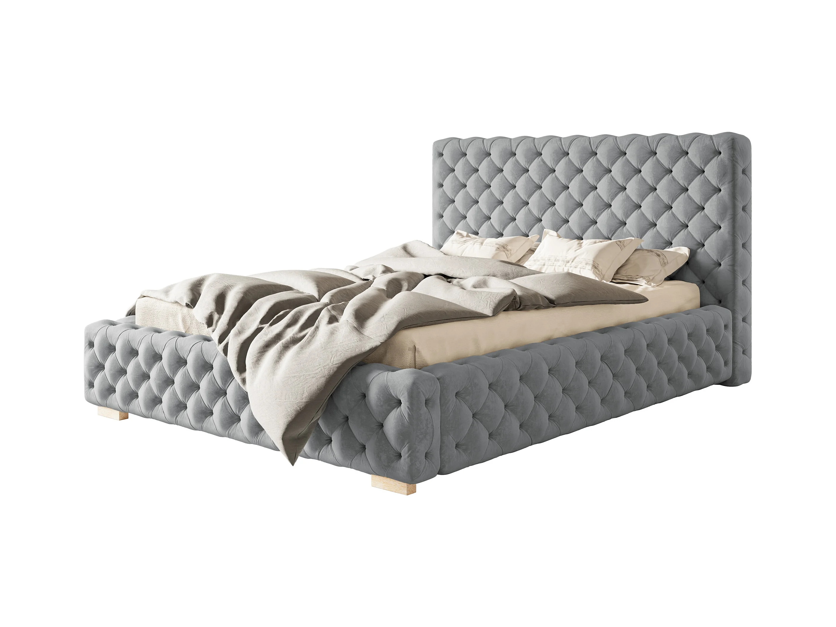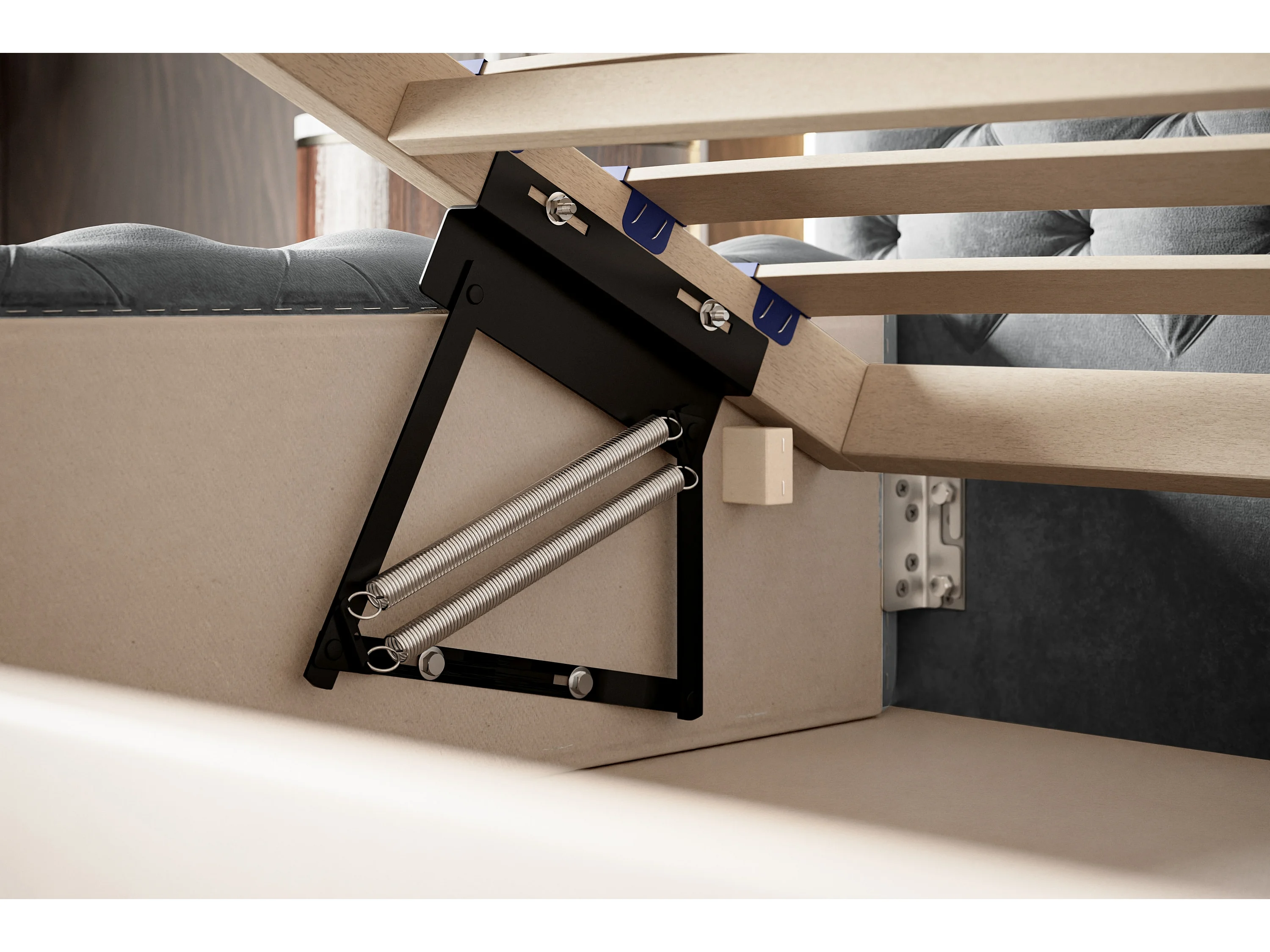 Lit rembourré Miami avec tête de lit, 160x200 cm, lit double avec coffre de rangement et sommier à lattes en bois, tissu velours, couleur : gris foncé