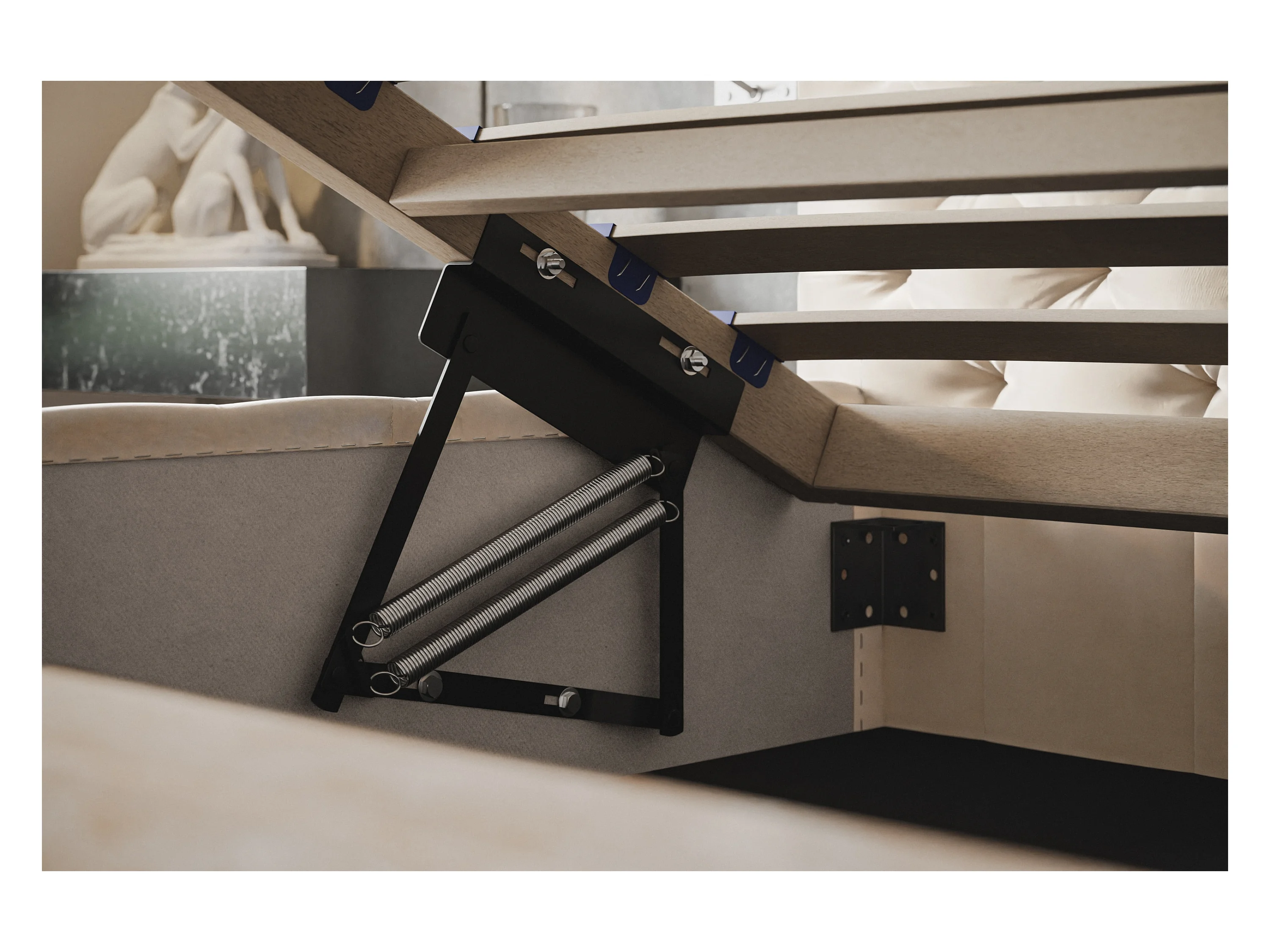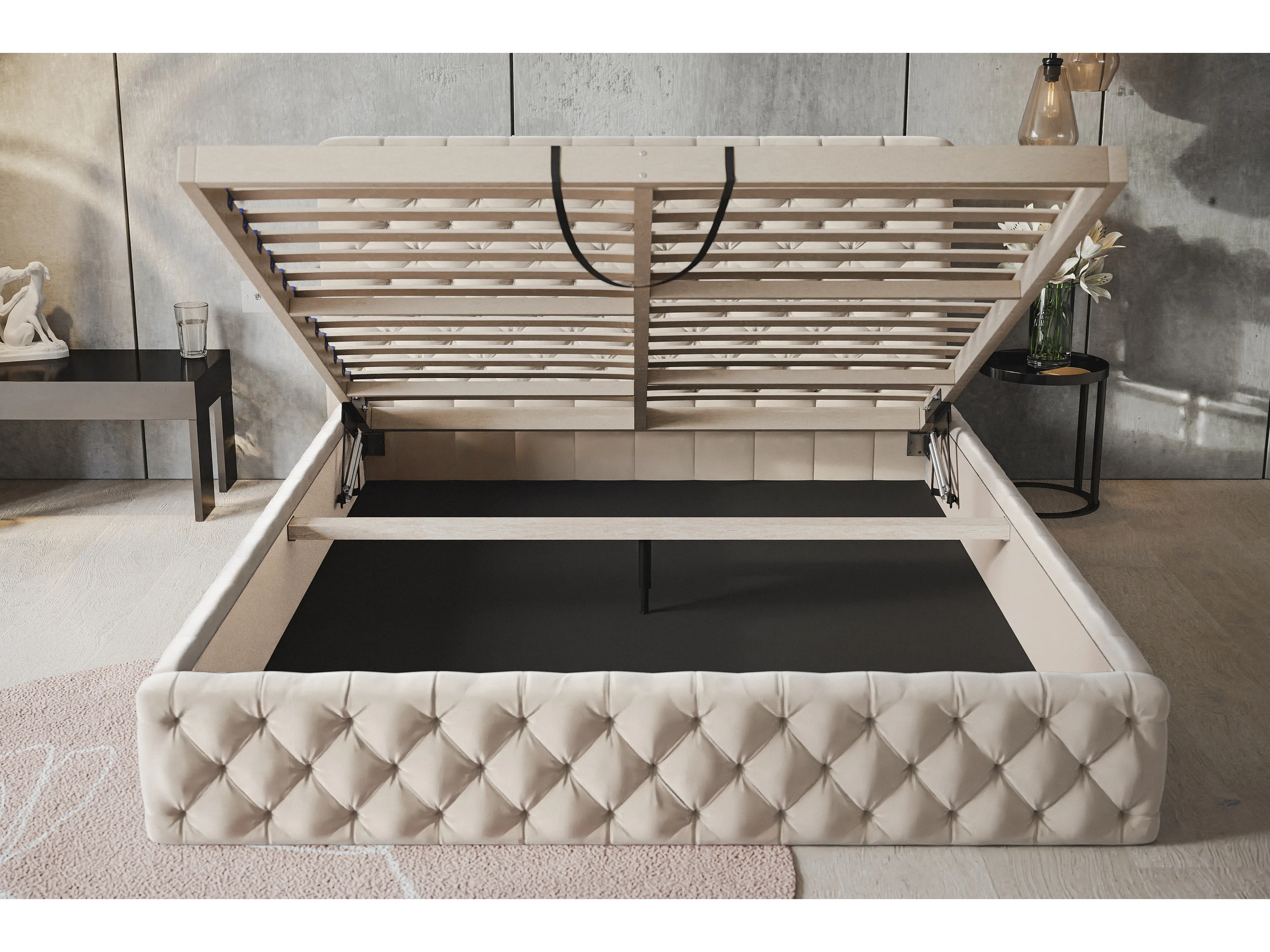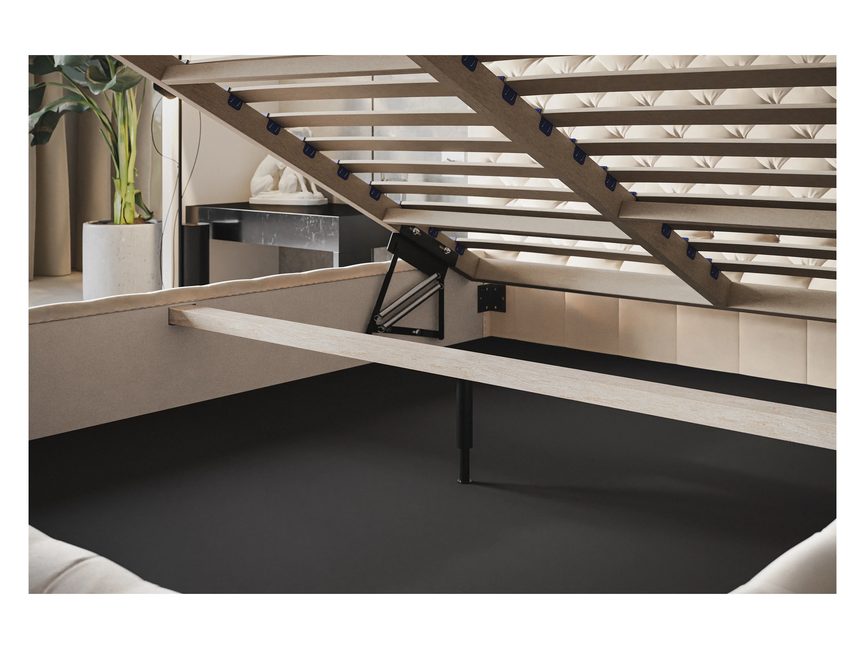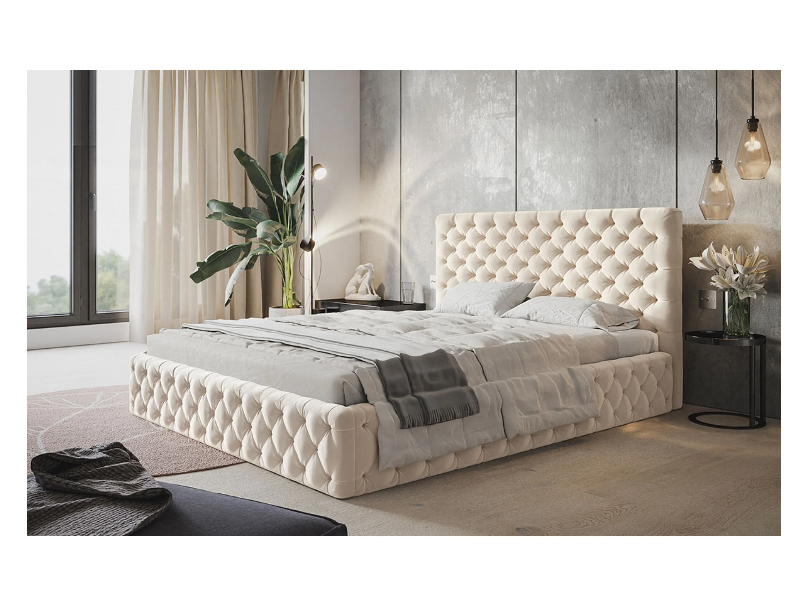 Lit rembourré MIAMI SLIM avec tête de lit, 140 x 200 cm, lit double avec coffre de rangement et sommier à lattes en bois, couleur : beige, tissu velours