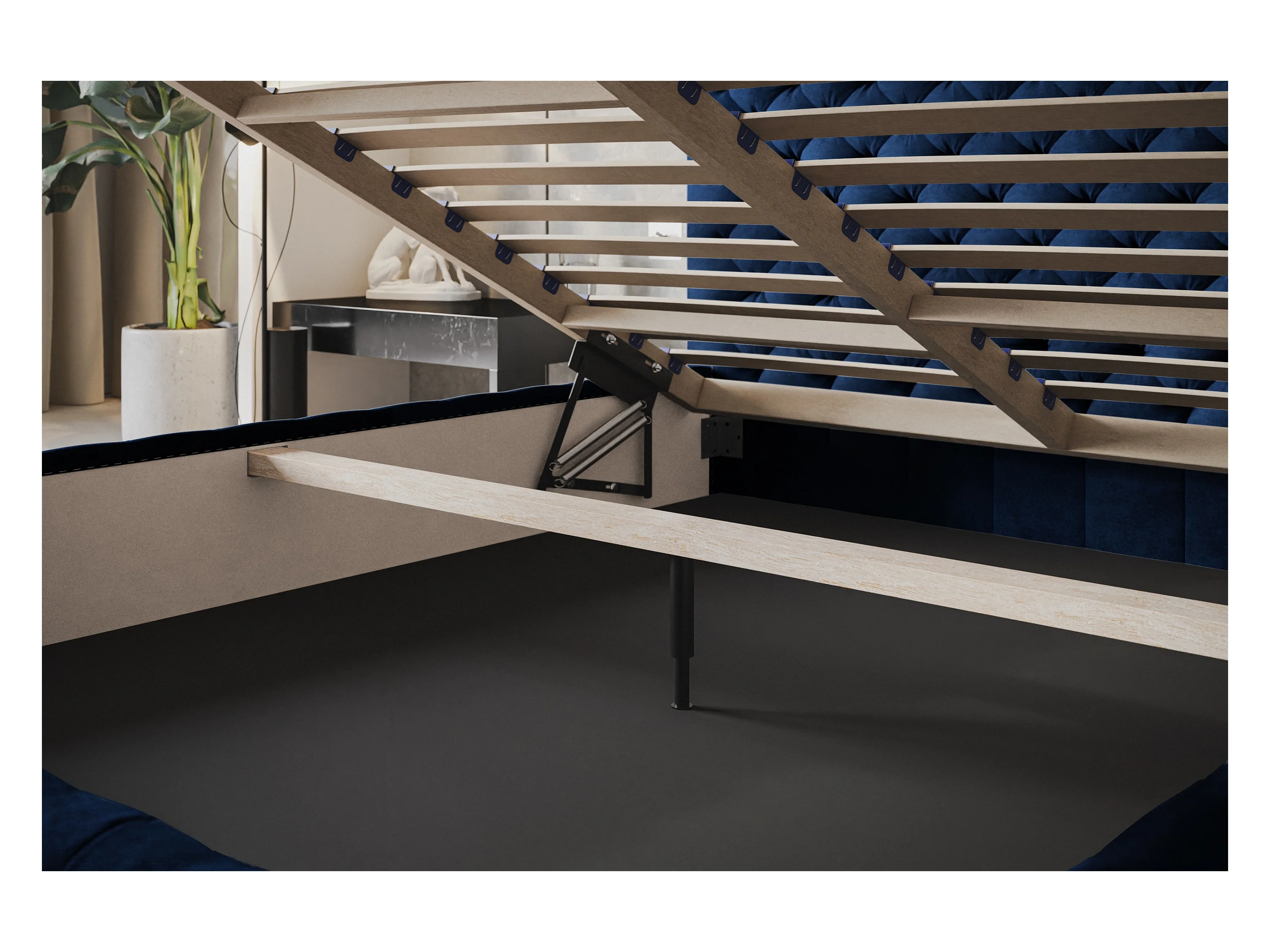 Lit rembourré MIAMI SLIM avec tête de lit, 140 x 200 cm, lit double avec coffre de rangement et sommier à lattes en bois, couleur : noir, tissu velours