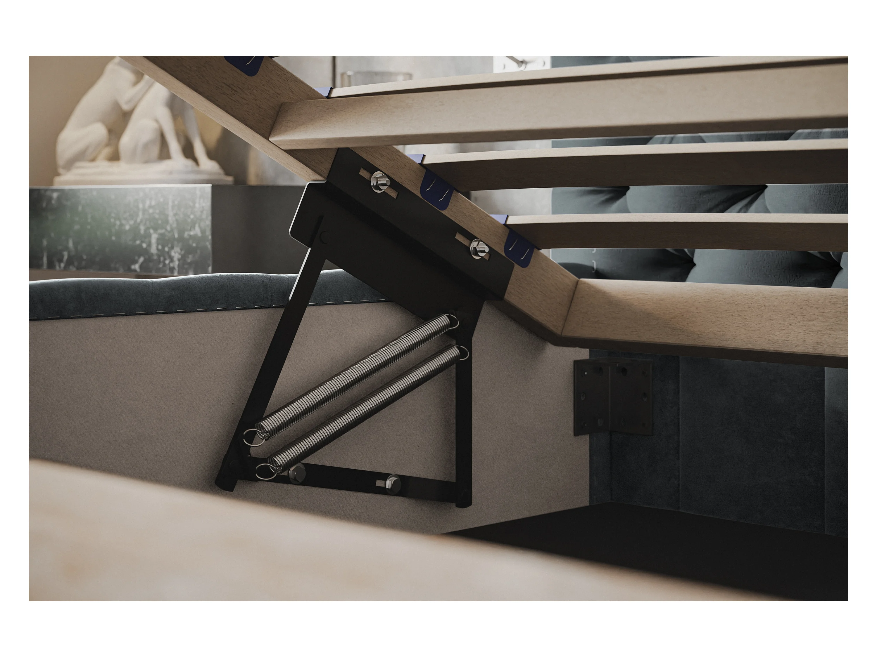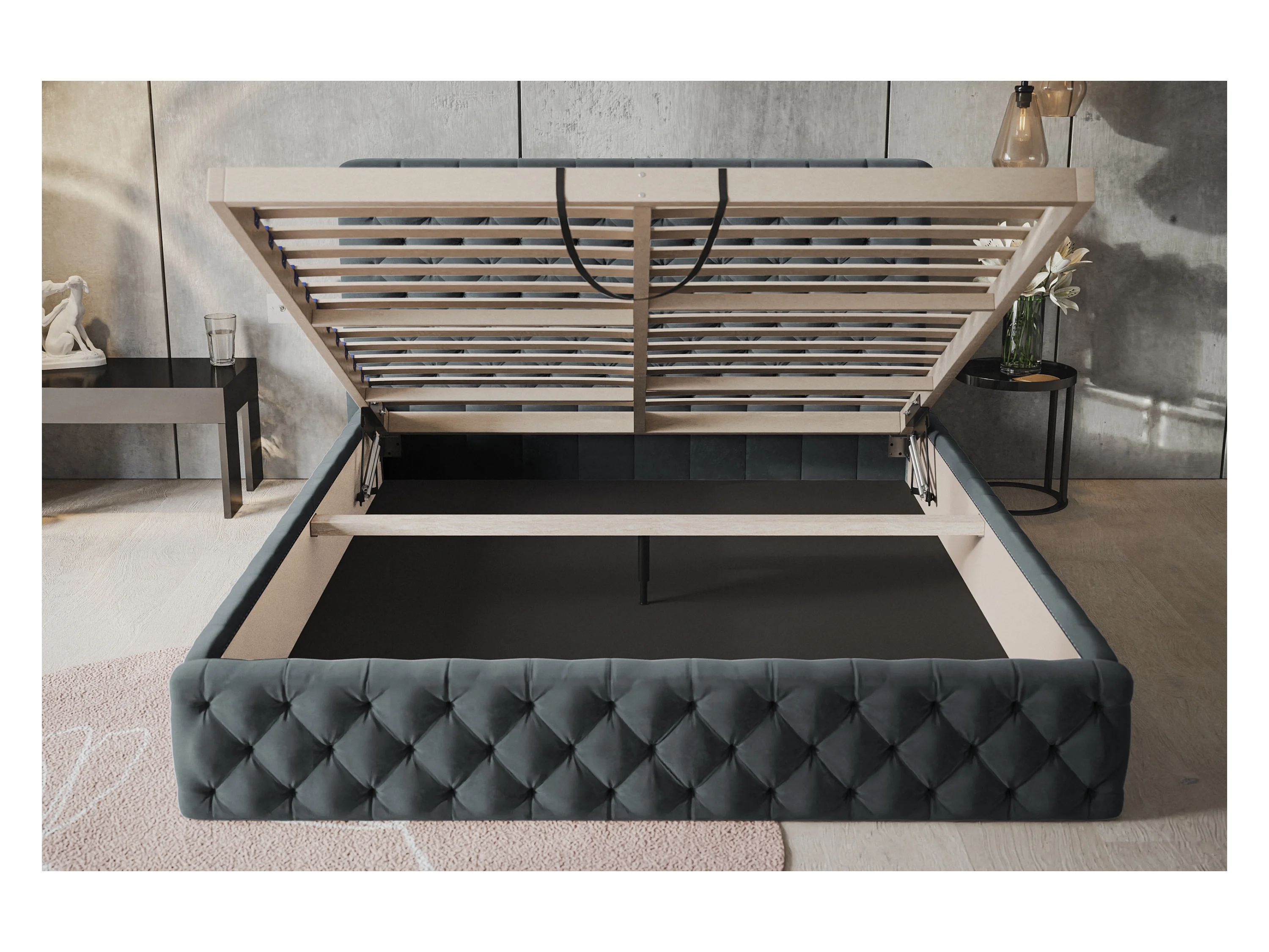 Lit rembourré MIAMI SLIM avec tête de lit, 160 x 200 cm, lit double avec coffre de rangement et sommier à lattes en bois, couleur : gris foncé, tissu velours