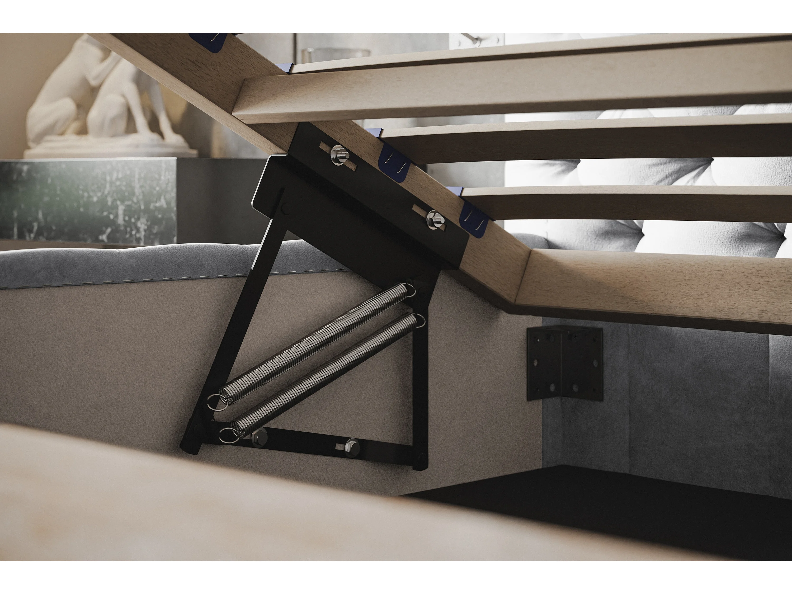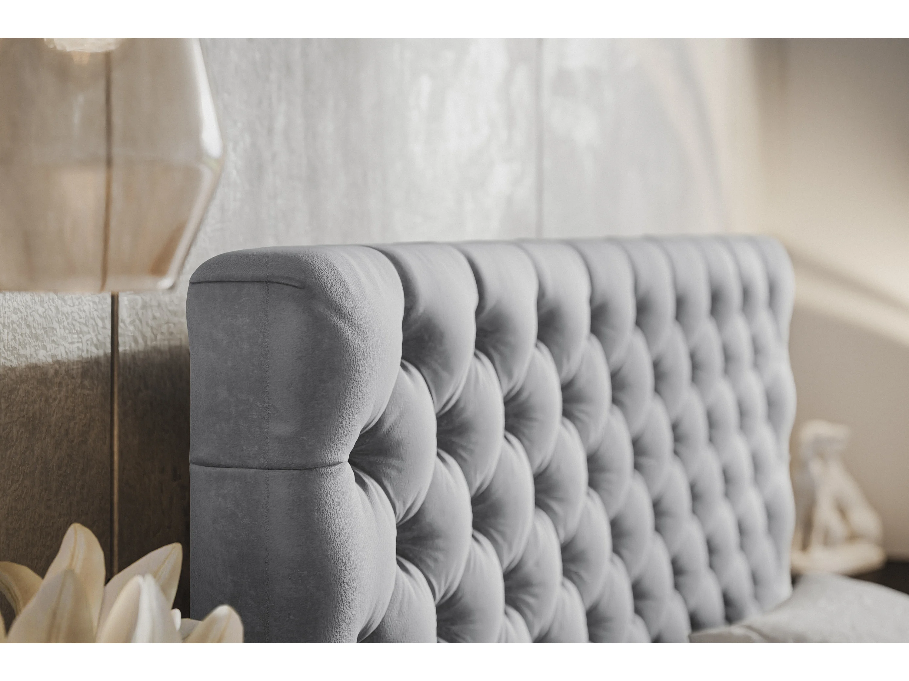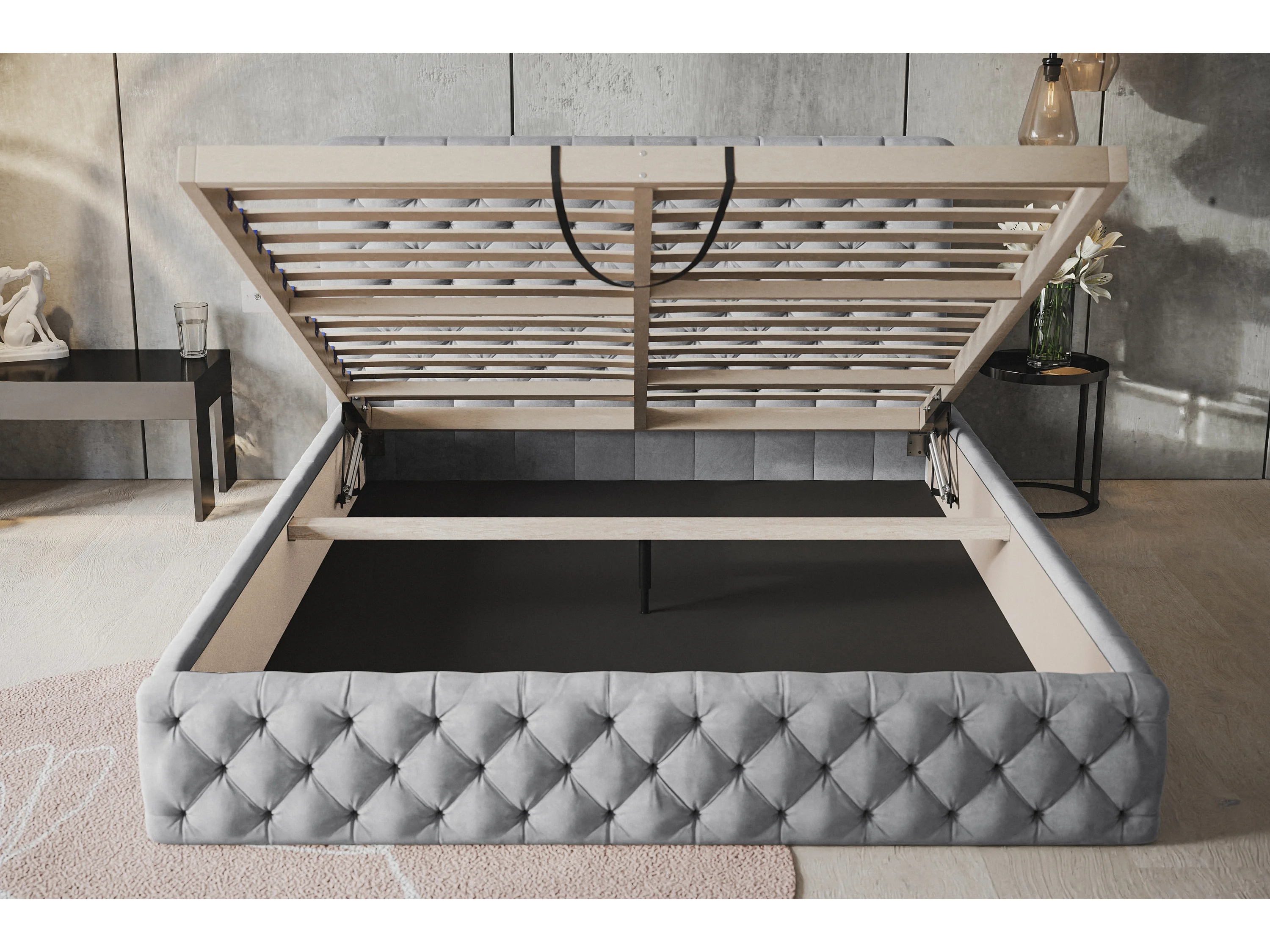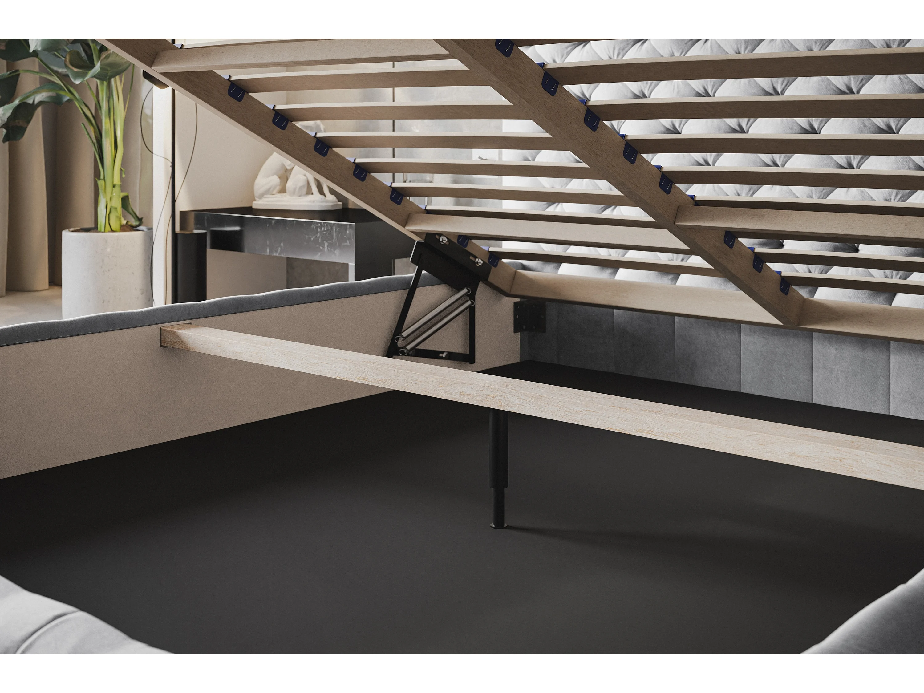 Lit rembourré MIAMI SLIM avec tête de lit, 160 x 200 cm, lit double avec coffre de rangement et sommier à lattes en bois, couleur : gris, tissu velours
