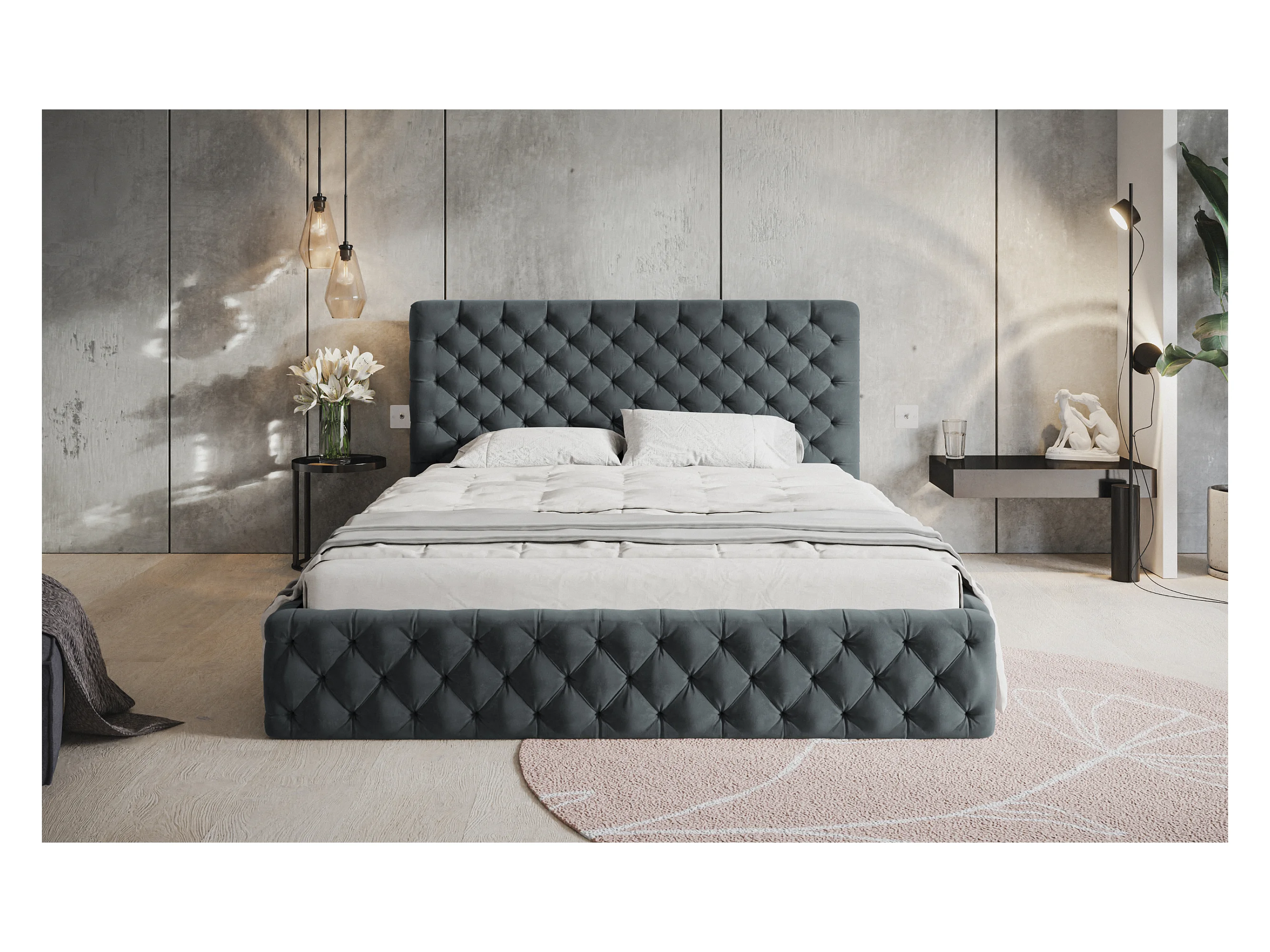 Lit rembourré MIAMI SLIM avec tête de lit, 180 x 200 cm, lit double avec coffre de rangement et sommier à lattes en bois, couleur : gris foncé, tissu velours