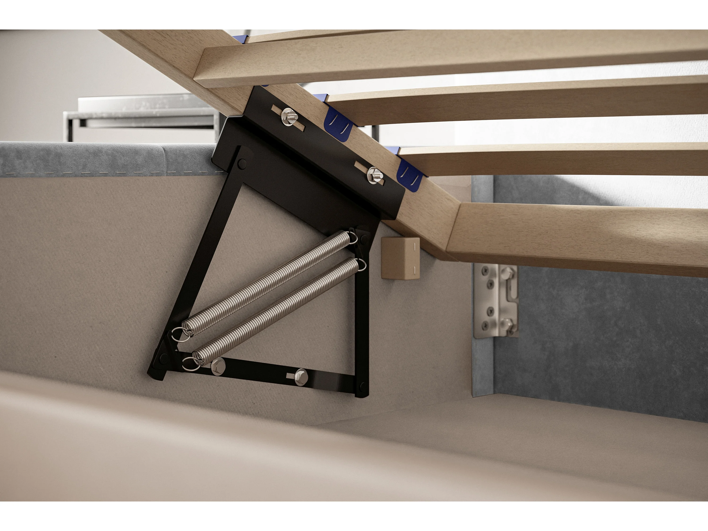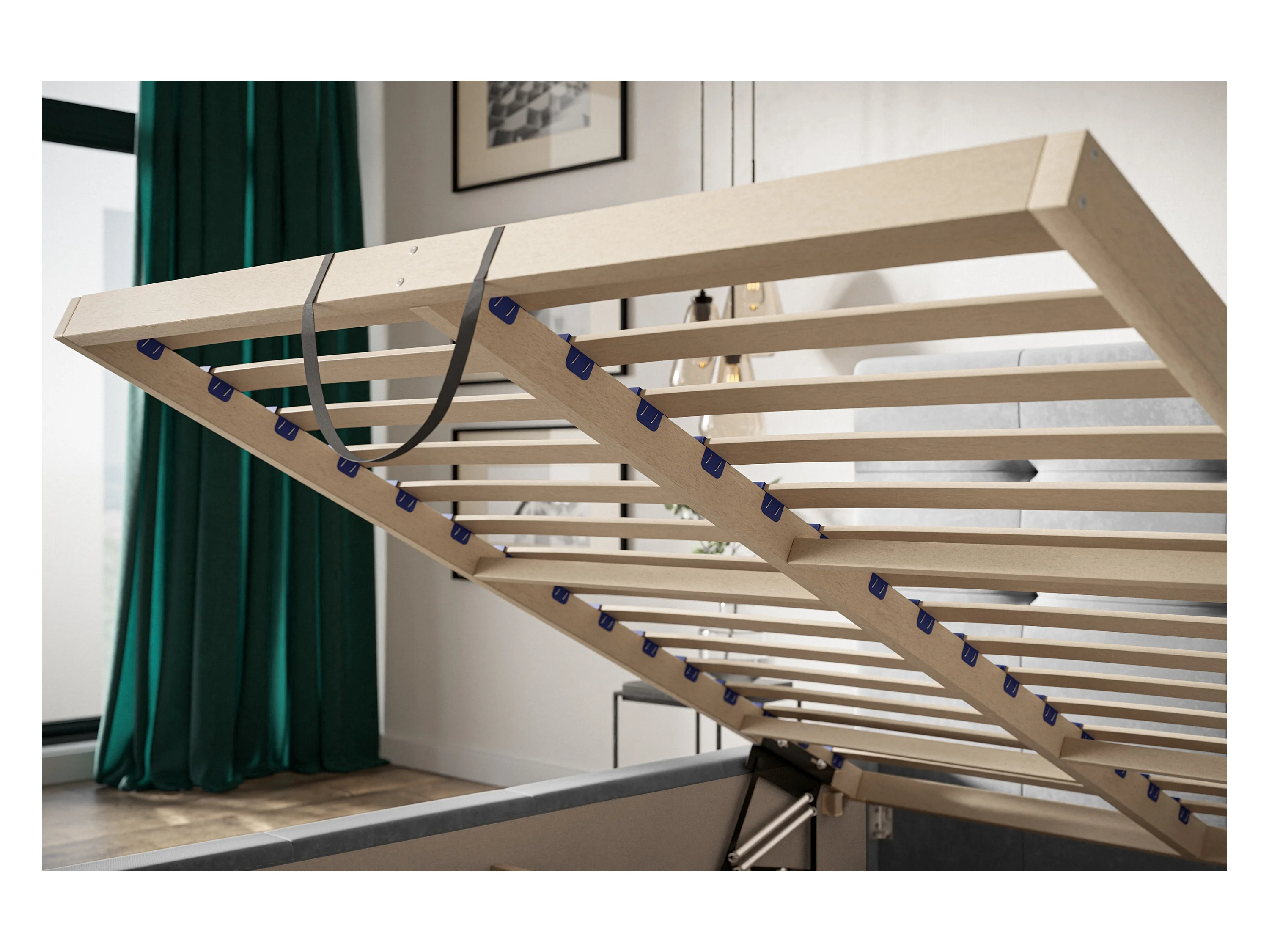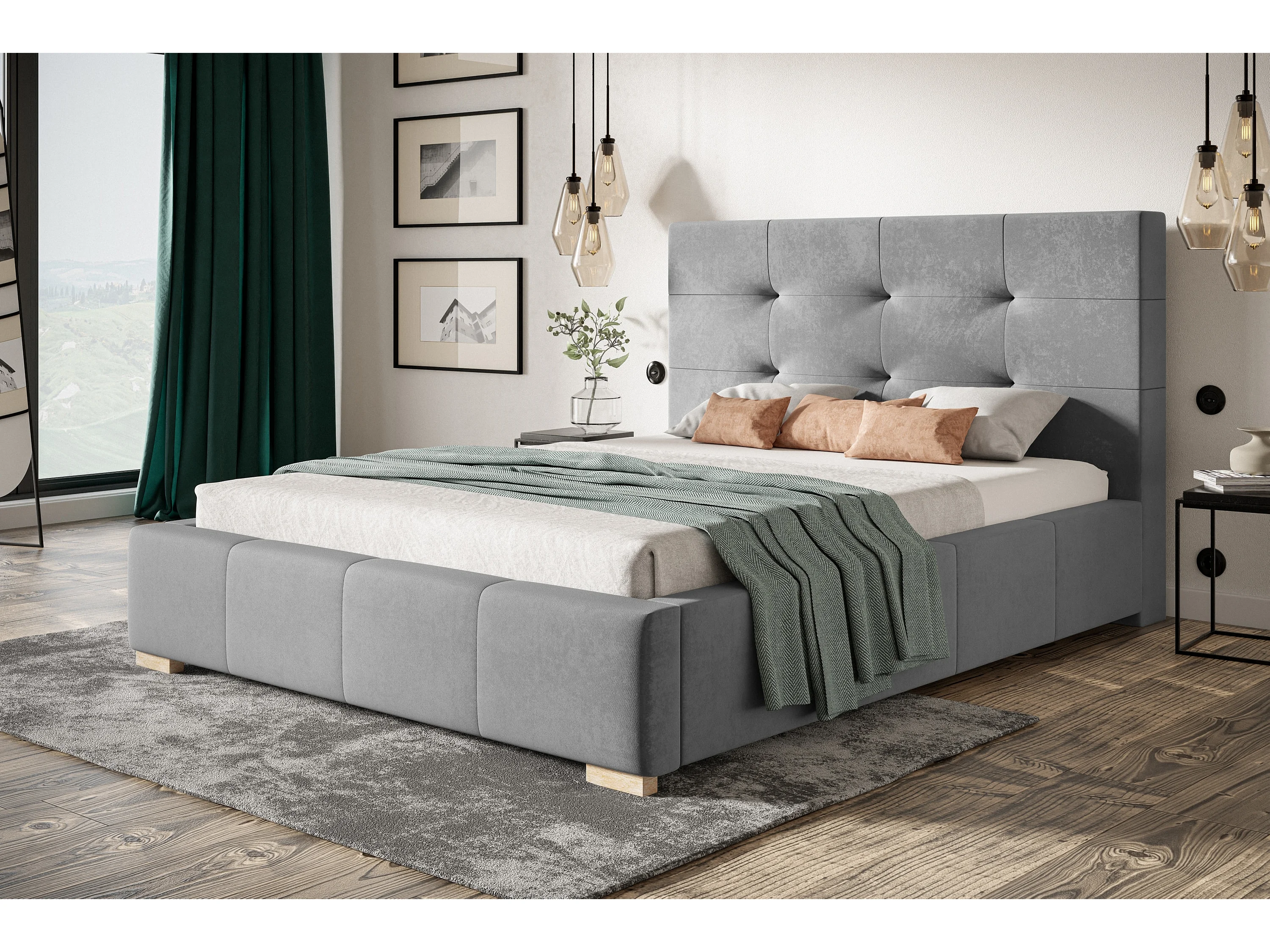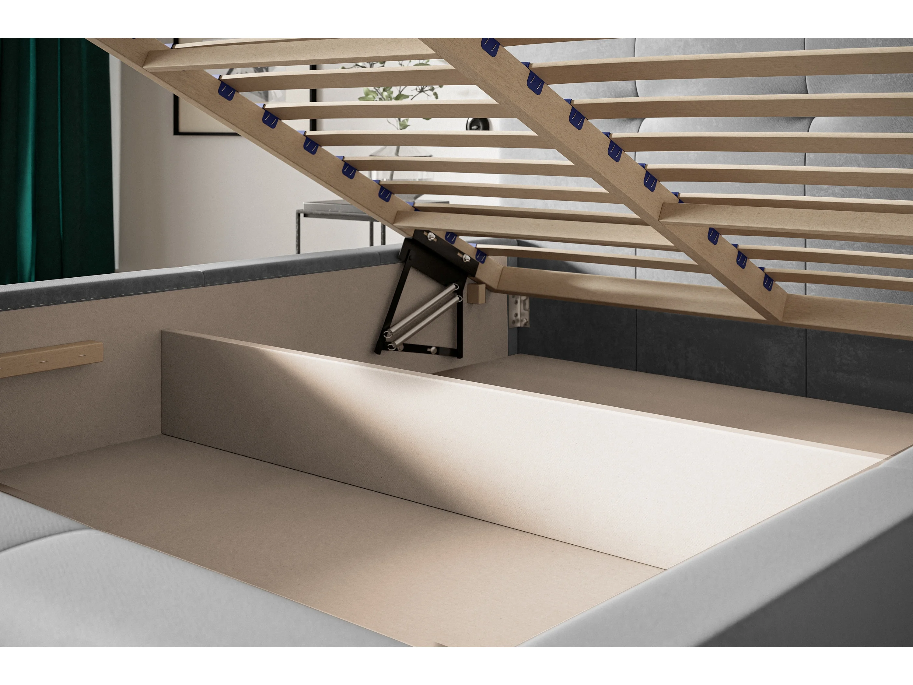 Lit rembourré Oslo avec tête de lit, 140x200 cm, lit double avec coffre de rangement et sommier à lattes en bois, tissu velours, couleur : gris
