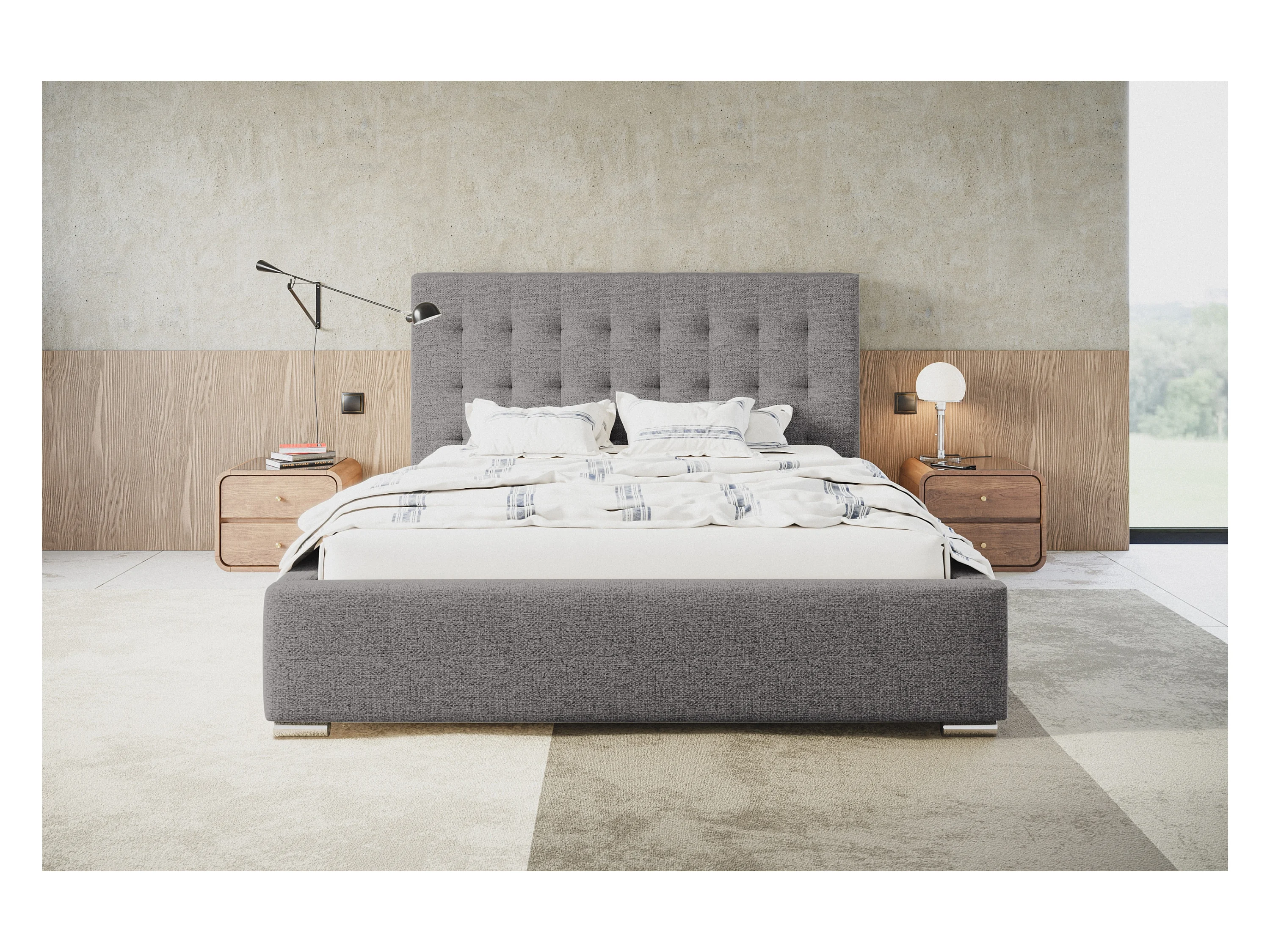 Lit rembourré RIO avec tête de lit, 120x200 cm, lit double avec coffre de rangement et sommier à lattes en bois, tissu structuré, couleur : gris clair