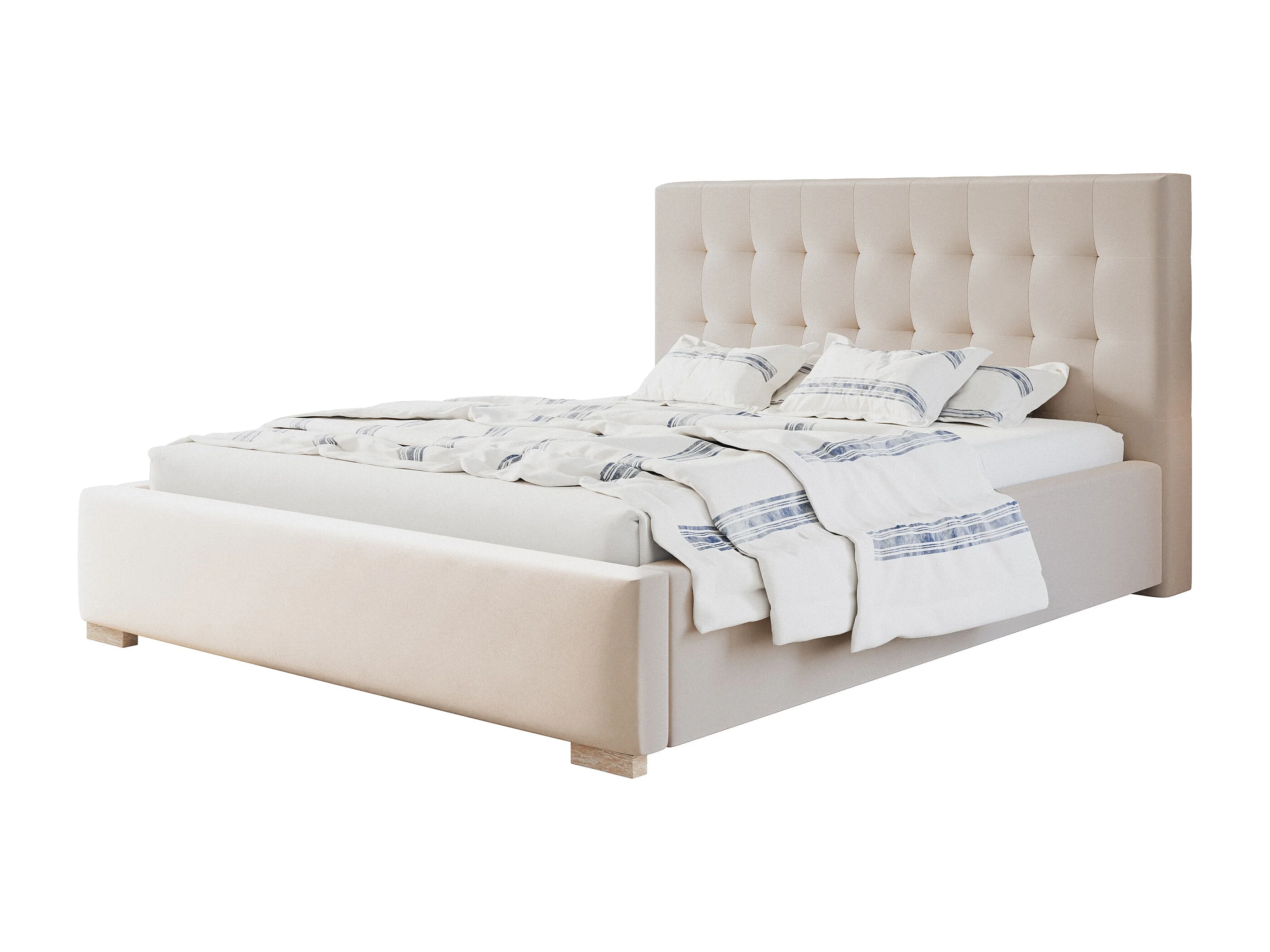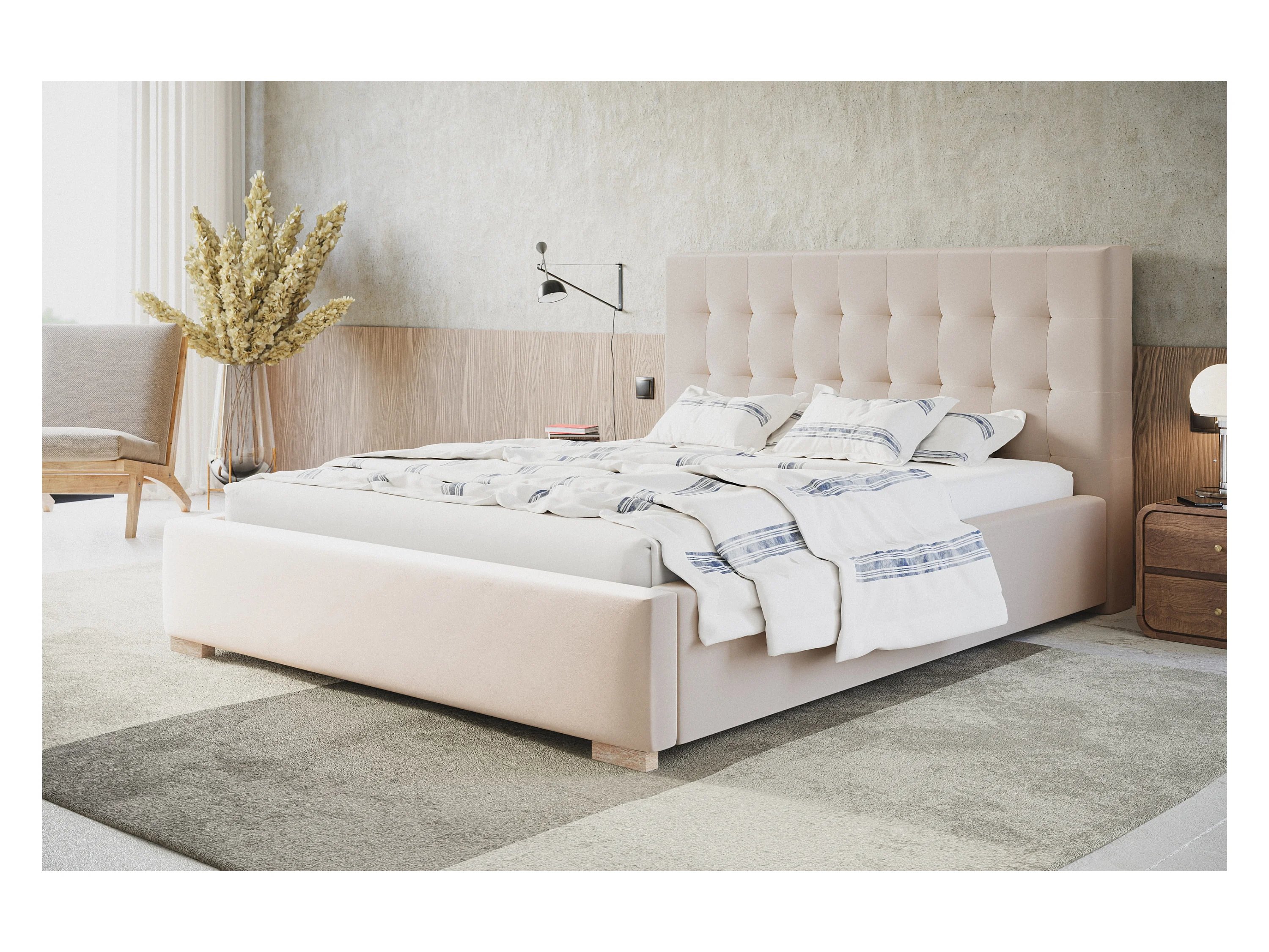 Lit rembourré RIO avec tête de lit, 140x200 cm, lit double avec coffre de rangement et sommier à lattes en bois, tissu velours, couleur : sable