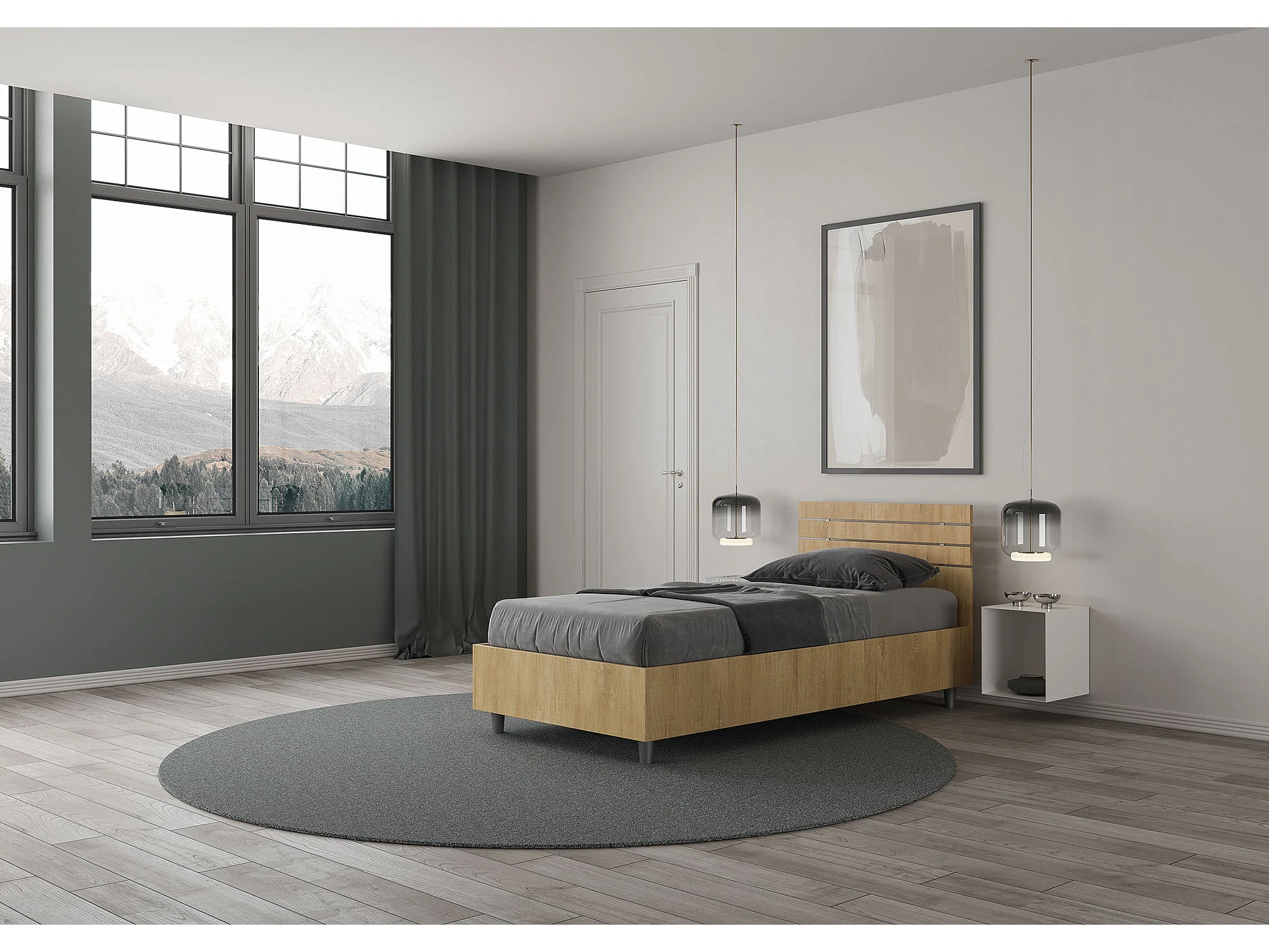 Lit sans sommier Tête de lit droite 80x190 à lattes en chêne Ankel