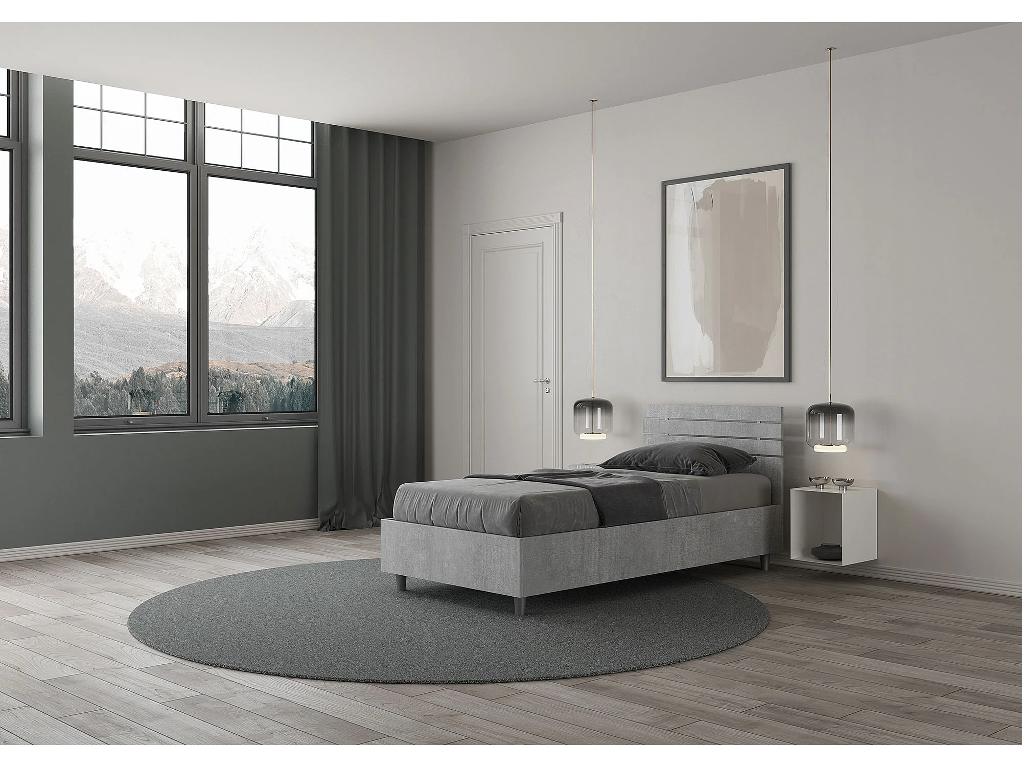 Lit sans sommier Tête de lit droite 80x190 avec lattes en ciment Ankel