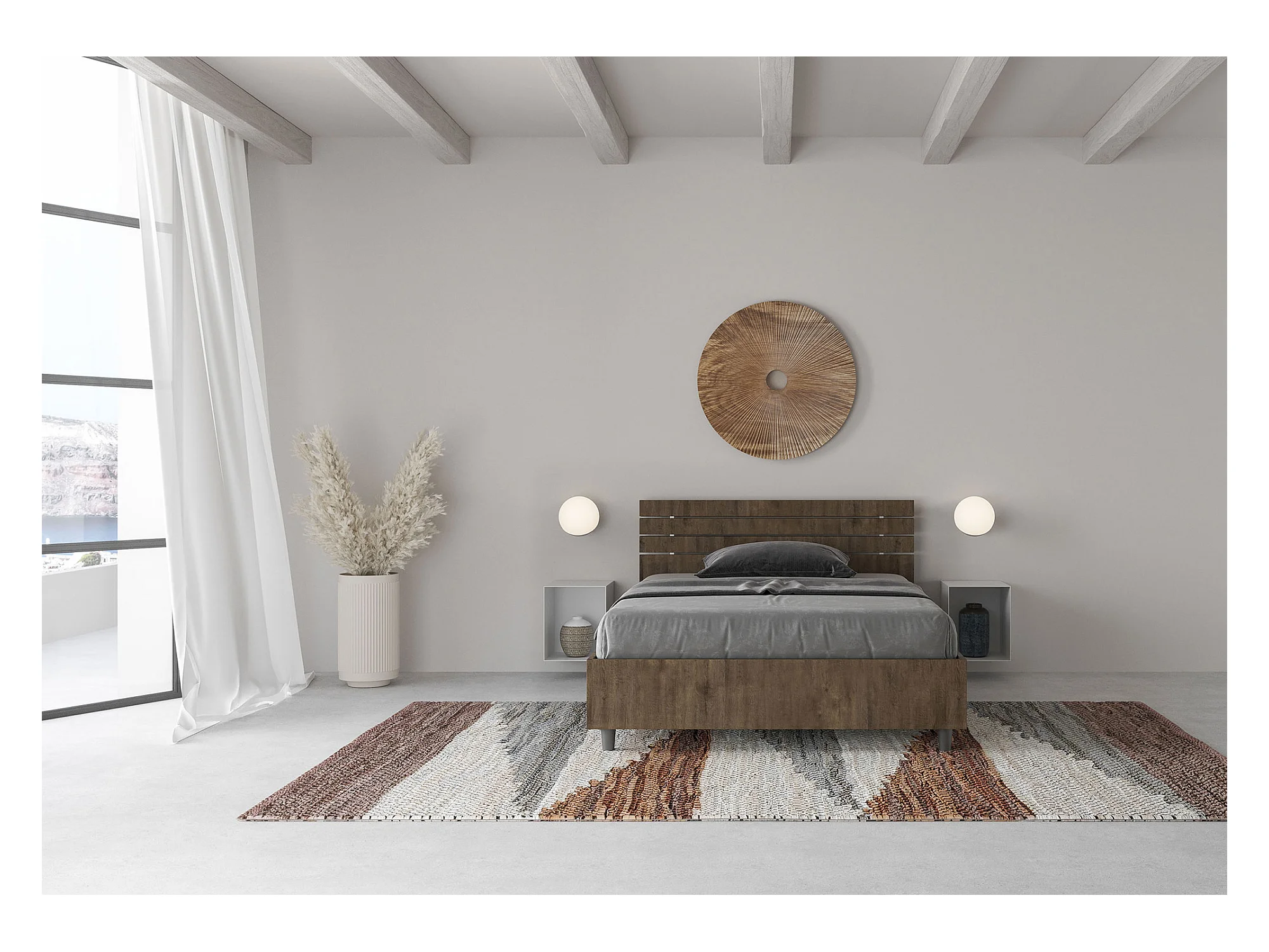 Lit 1 place et demi sans sommier 120x200 tête de lit inclinée avec des lames noyer Ankel