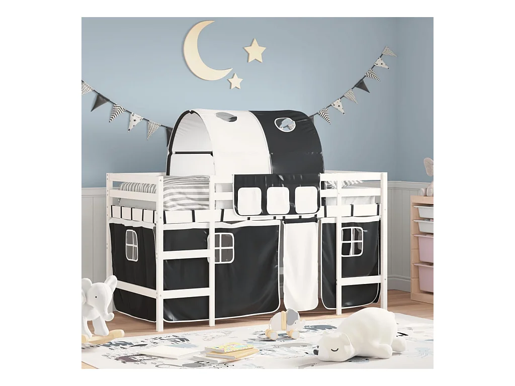 Lit simlpe-Lit mezzanine enfants avec tunnel sans matelas 90x200 cm