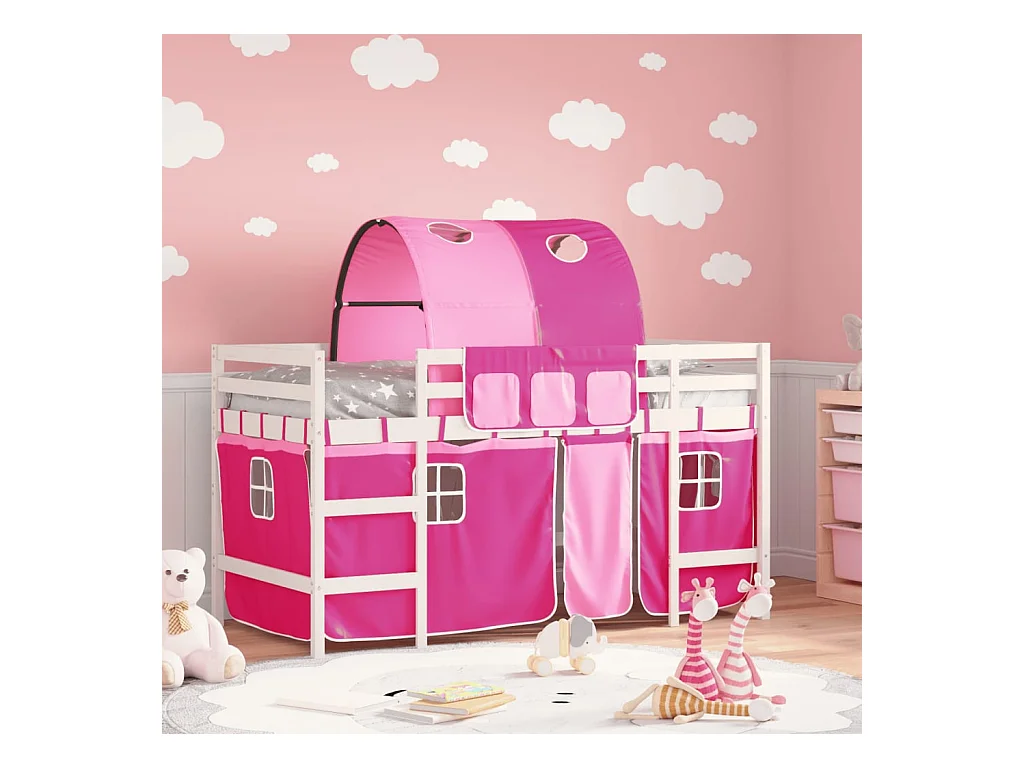 Lit simlpe-Lit mezzanine enfants avec tunnel sans matelas rose 90x200 cm
