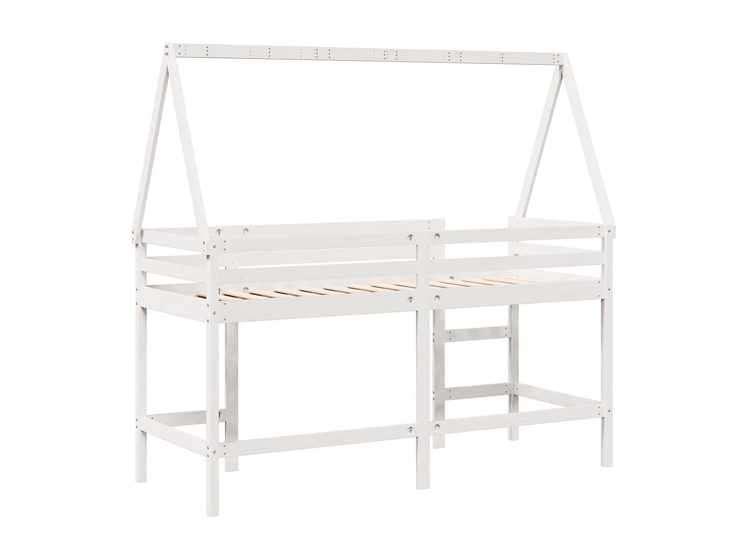 Lit simlpe-Lit superposé avec échelle et toit sans matelas blanc 90x200 cm