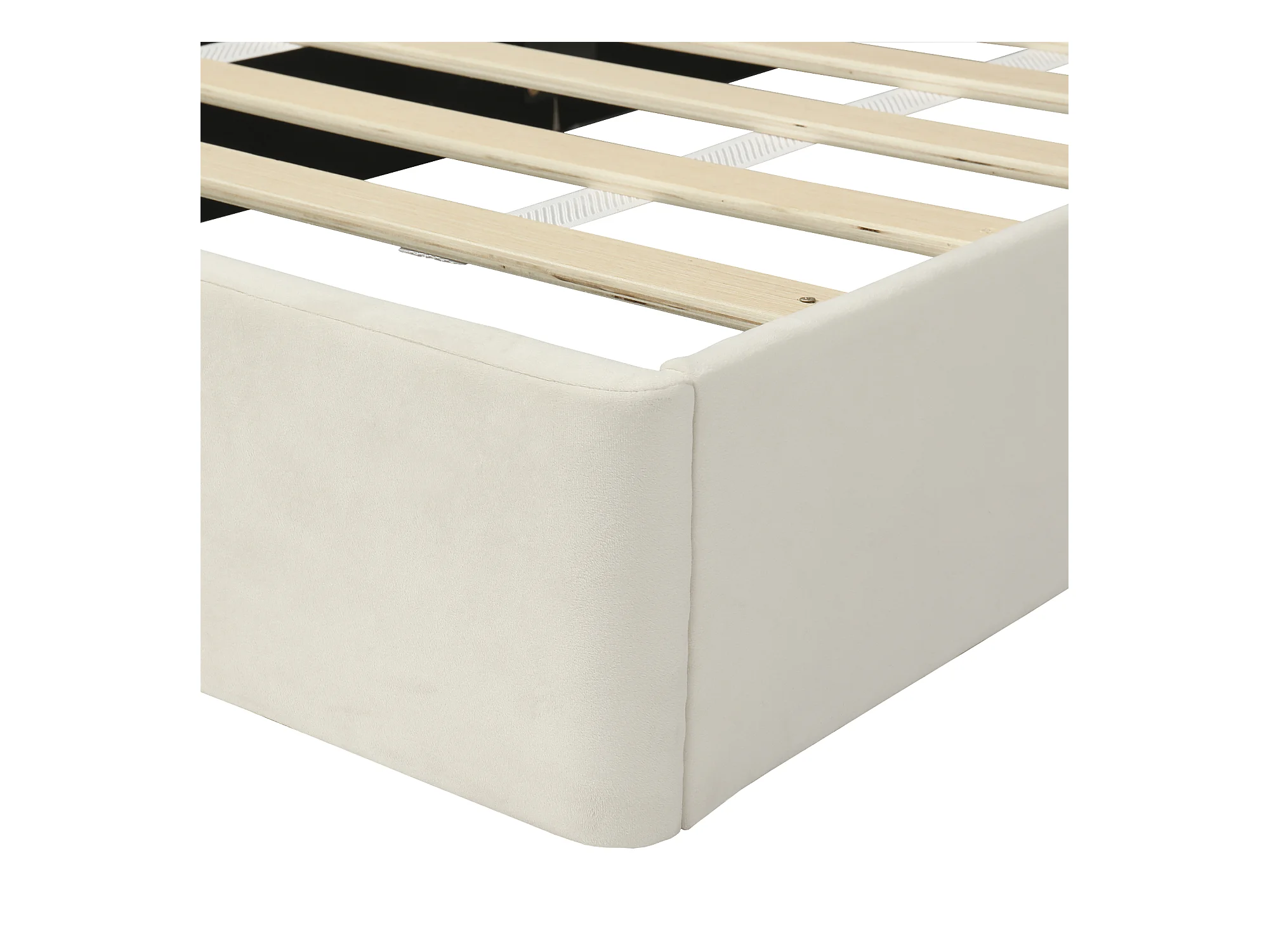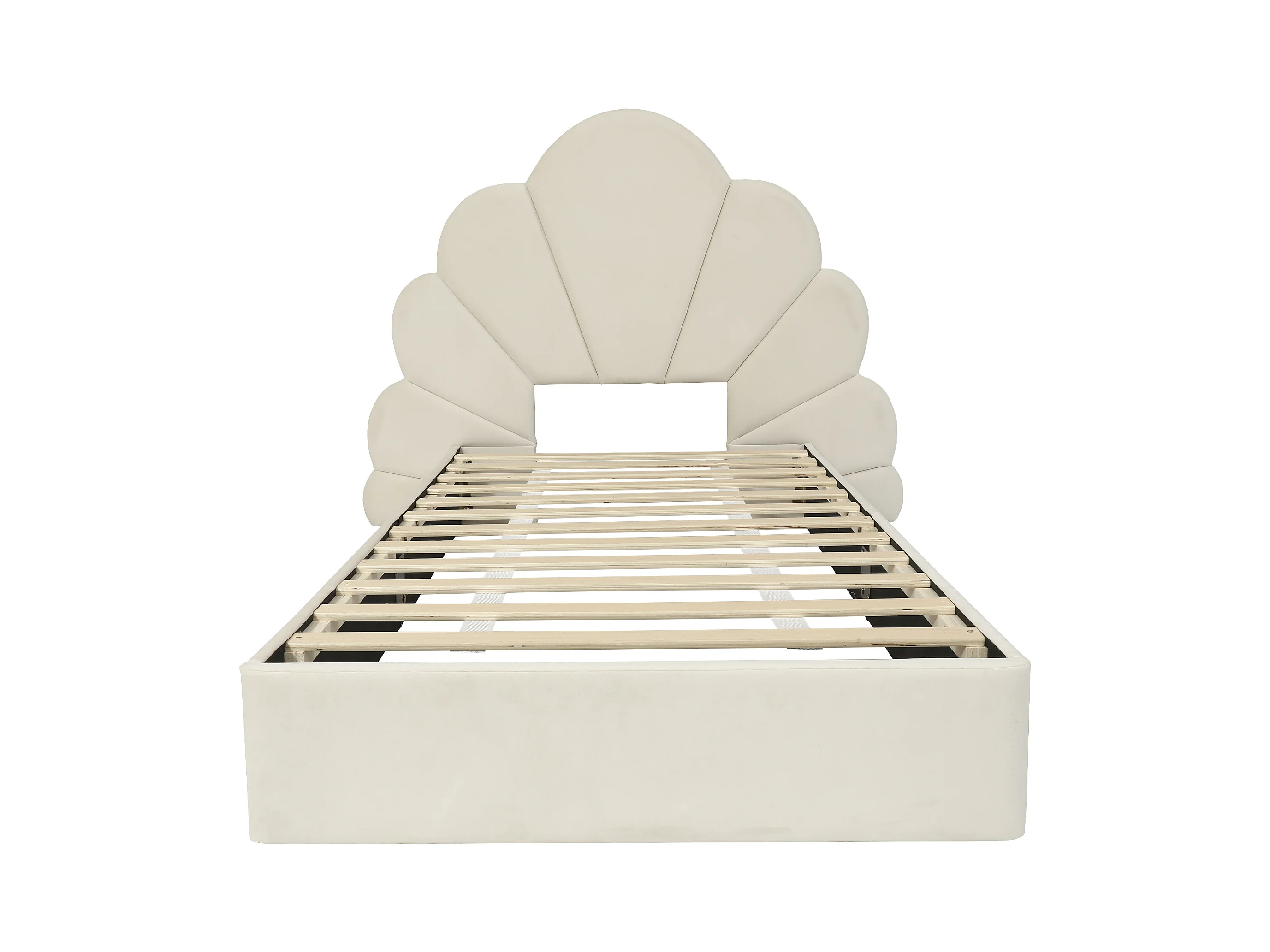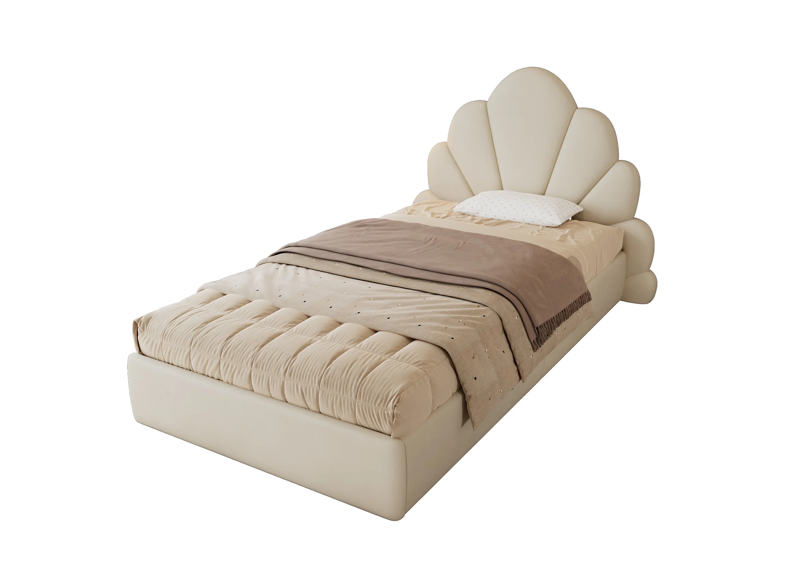Lit simple 90x200cm rembourré en velours - tête de lit en forme de fleur - avec sommier à lattes - Beige