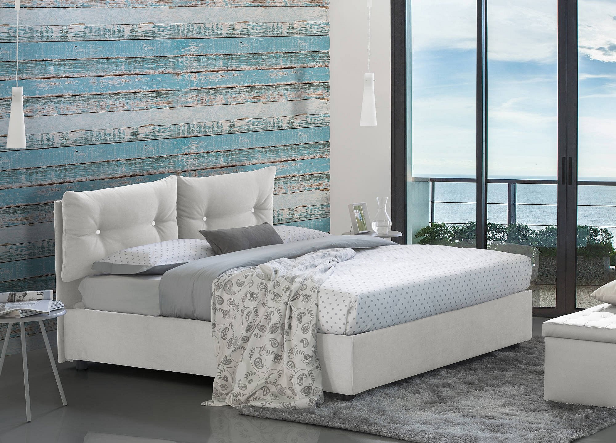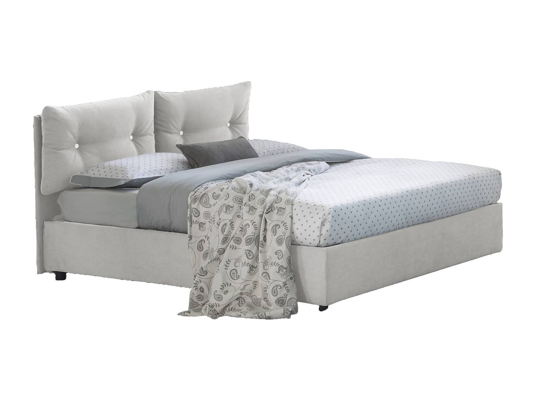 Lit simple Albina, Lit coffre avec revêtement en tissu, 100% Made in Italy, Ouverture frontale, avec matelas 80x190 cm inclus, Blanc