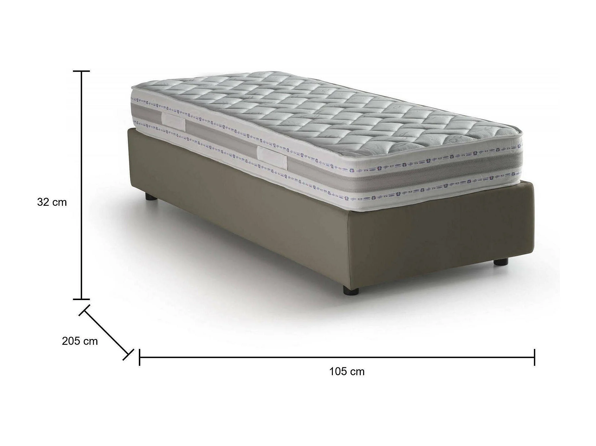 Lit simple Alessandra, Lit coffre avec revêtement en éco-cuir, 100% Made in Italy, Ouverture frontale, avec matelas 90x190 cm inclus, Taupe